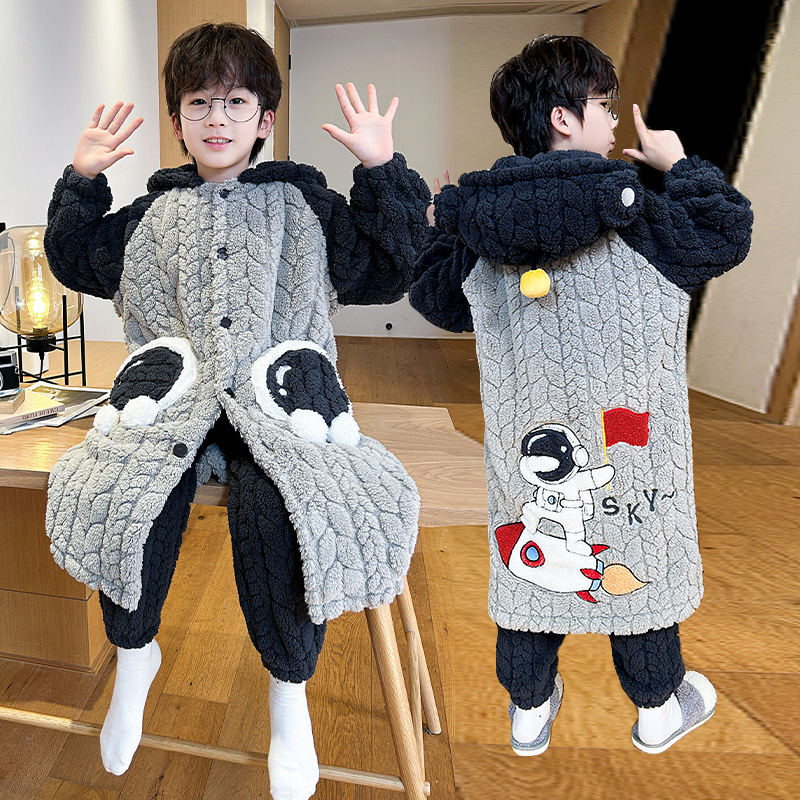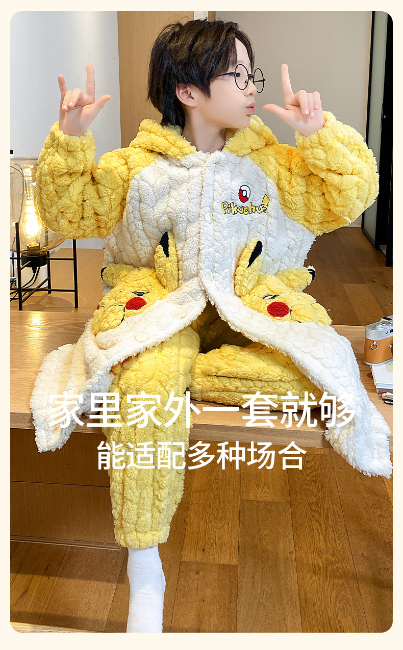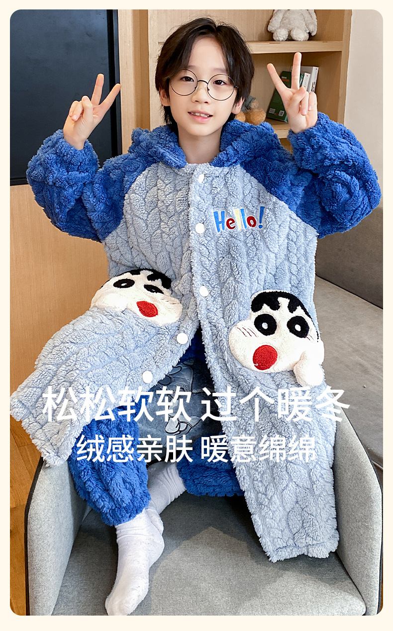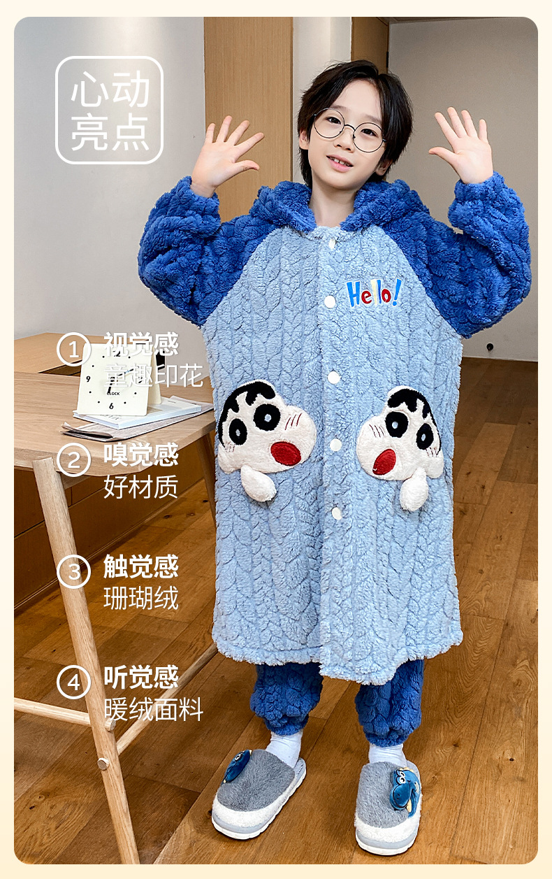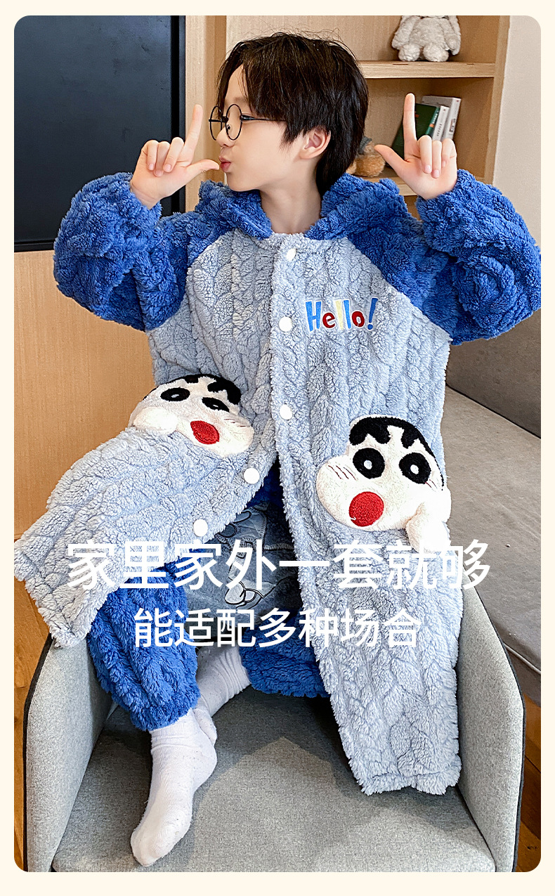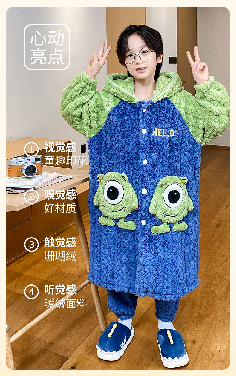 어린이 잠옷 소년 새로운 겨울 두꺼운 산호 양털 소년 만화 홈 옷 남자를위한 겨울 세트