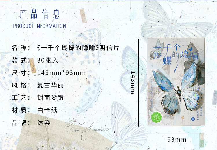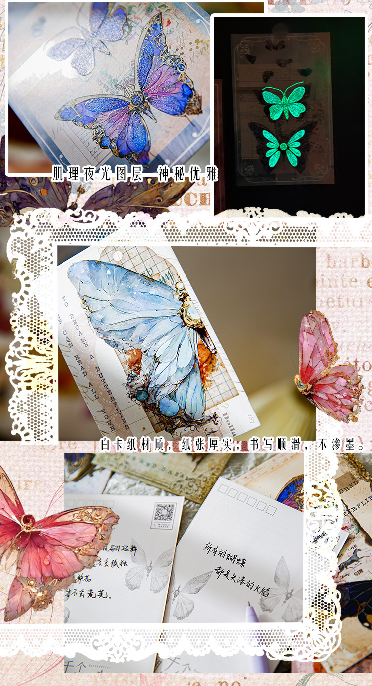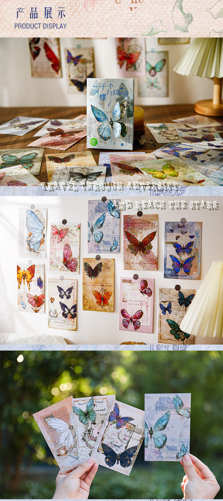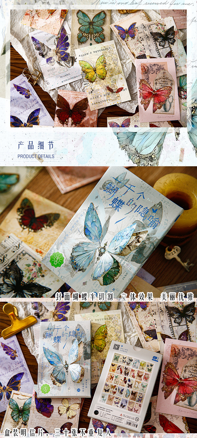Mu Dye 1,000 나비 은유 엽서 예술적 중공 3 차원 일러스트 메시지 축복 빛나는 기념 카드