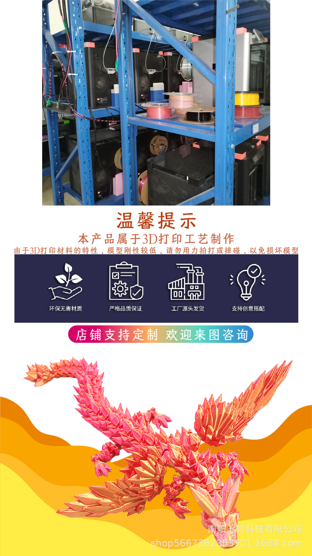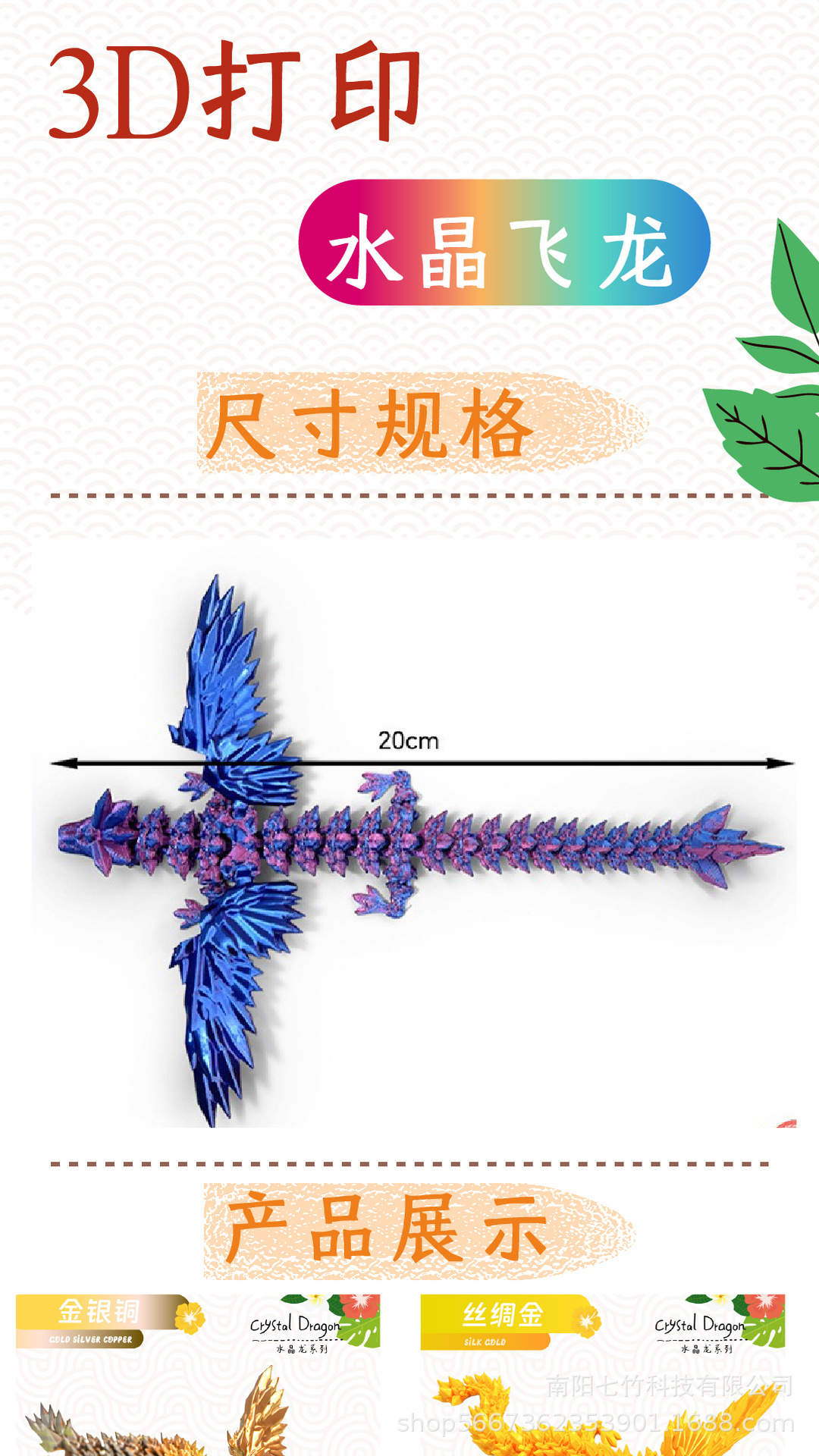 3D 인쇄 크리스탈 긴 꼬리 용 멀티 조인트 움직일 수있는 날개 손 장난감 어린이 자동차 장식품 선물스토어 가기