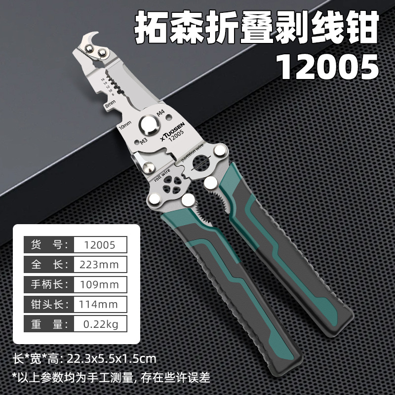 Tuosen 펜치, 와이어 커터, 배선 펜치, 와이어 압착 펜치, 다기능 접이식 와이어 스트리퍼, 전기 기술자를 위한 특수스토어 가기