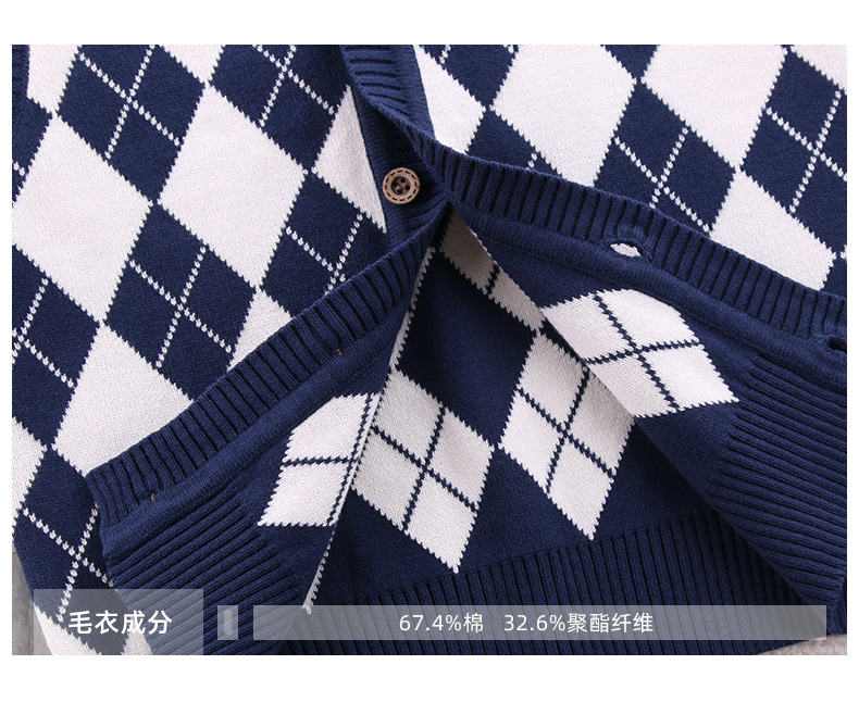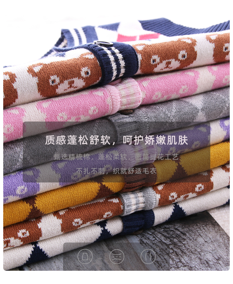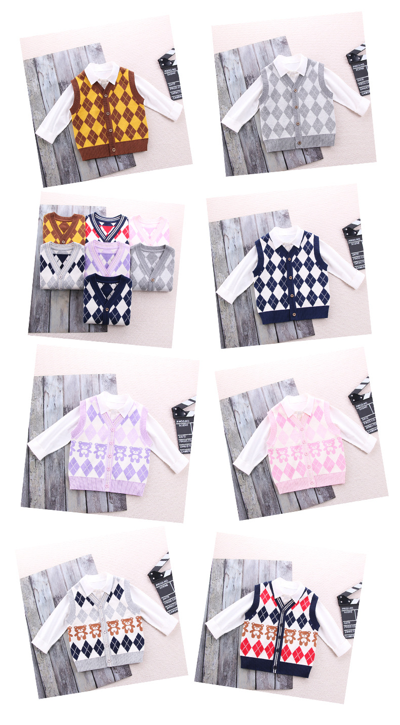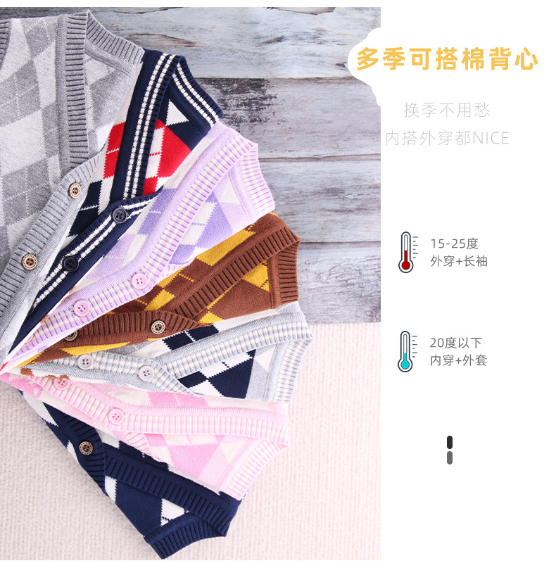 어린이 대학 스타일 조끼 어린이 스웨터 소년과 소녀 니트 V-Neck 오픈 버클 조끼 어린이 스웨터