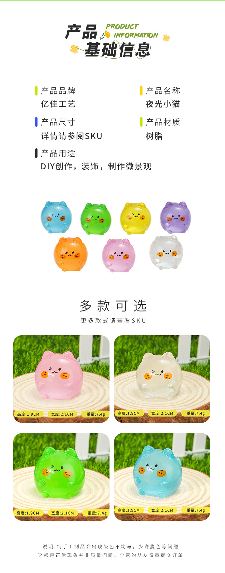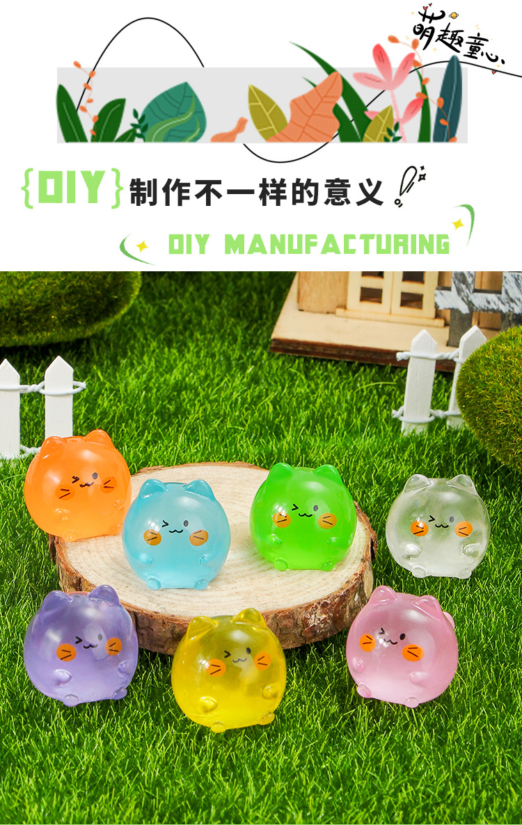 만화 다채로운 귀여운 빛나는 새끼 고양이 입체 수지 마이크로 풍경 원예 작은 장식품 다채로운 보석 액세서리 장식품