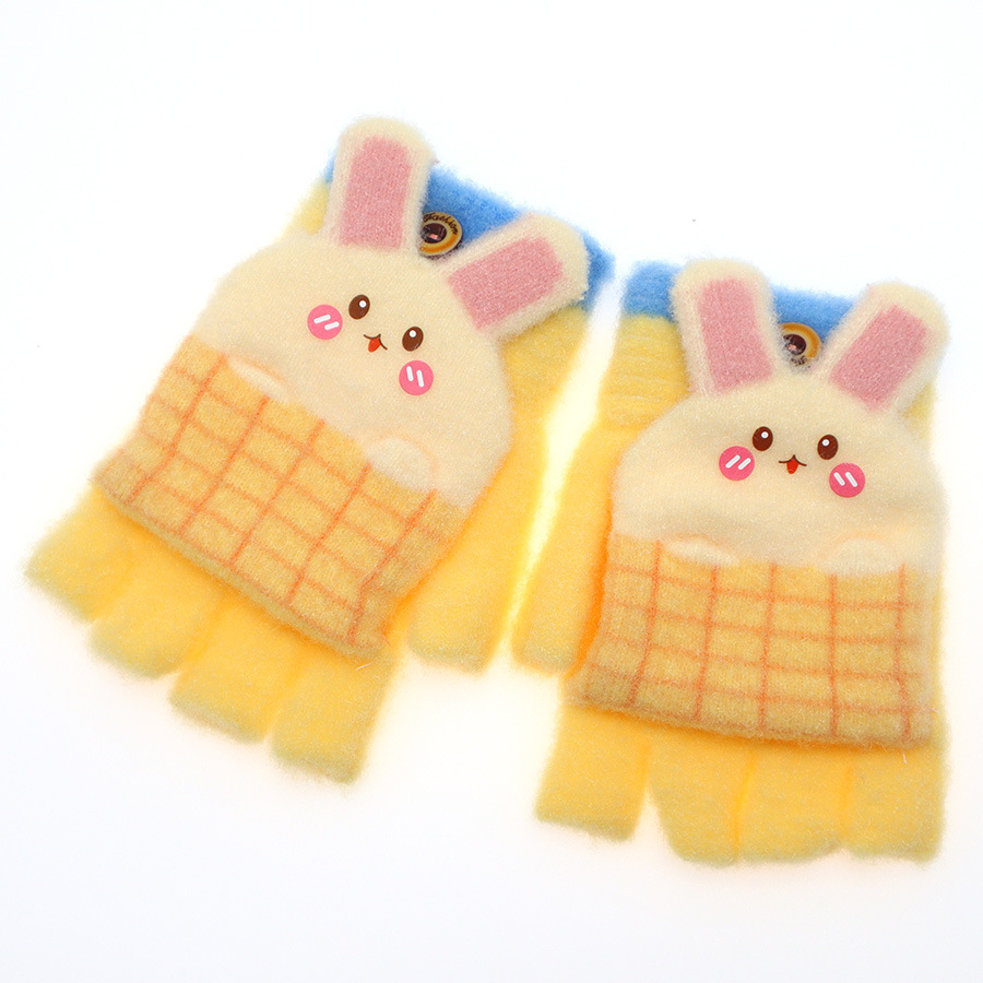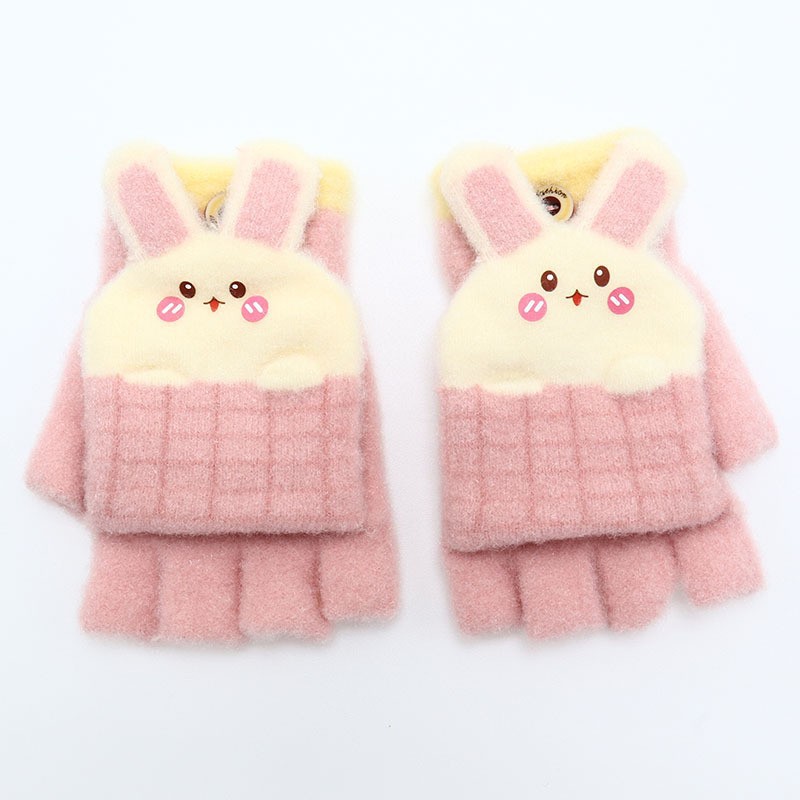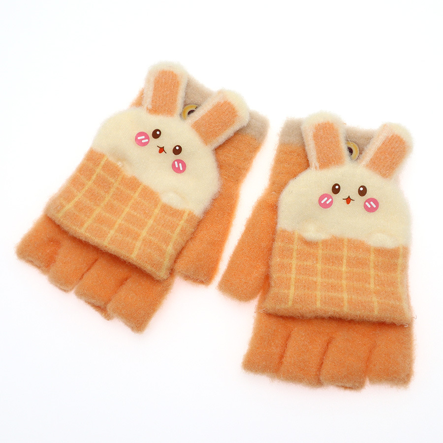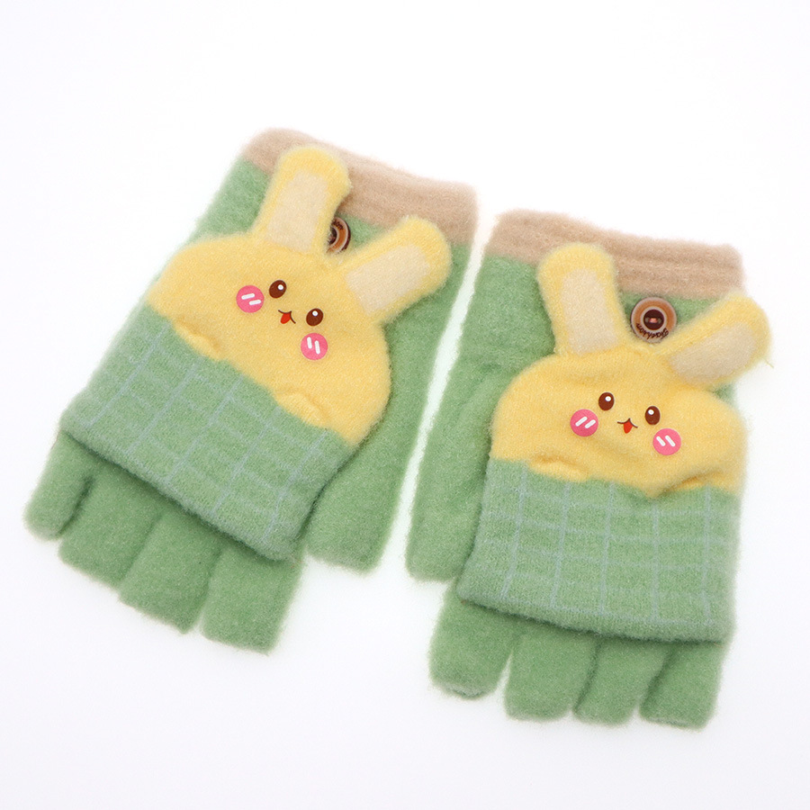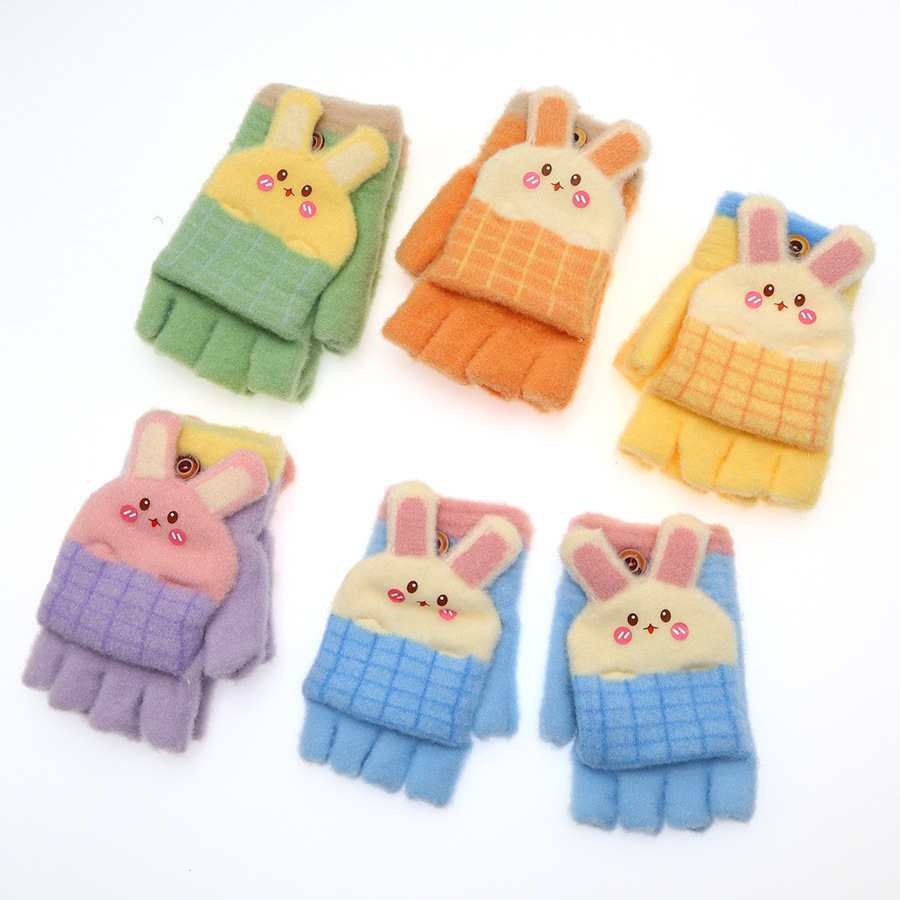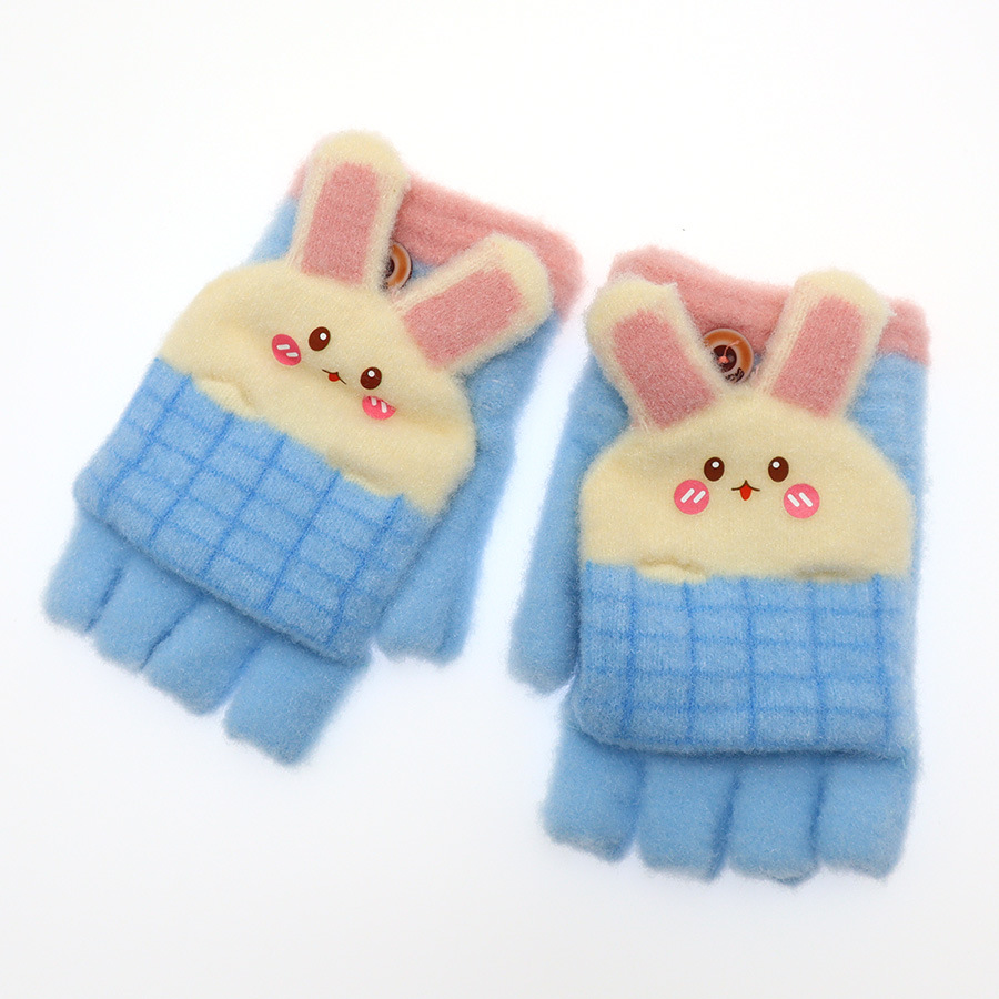 어린이 플립 장갑 겨울 새로운 중간 및 큰 어린이 만화 귀여운 토끼 반 손가락 학생 따뜻한 사이클링 쓰기