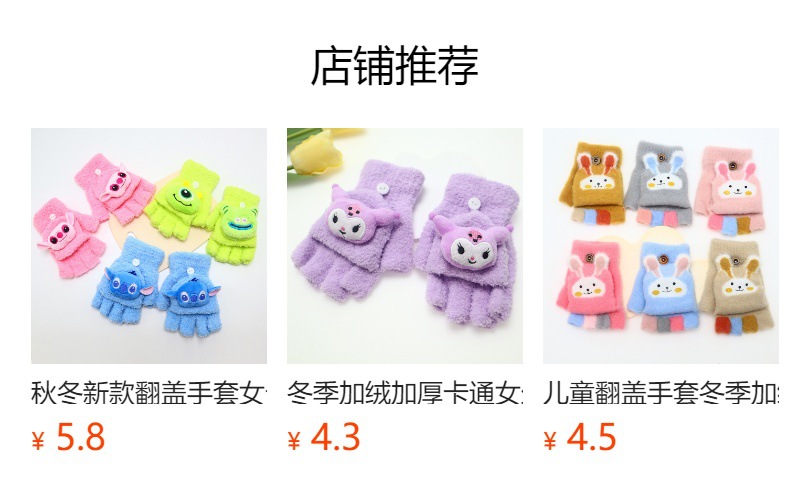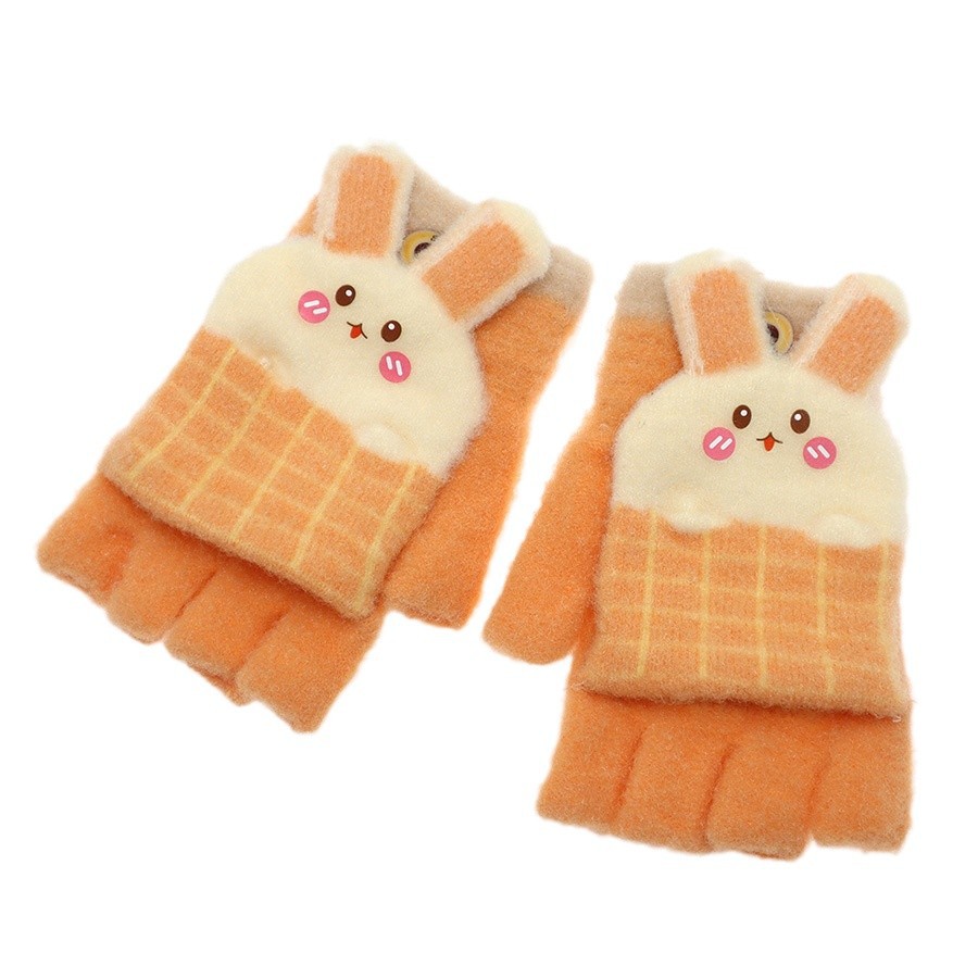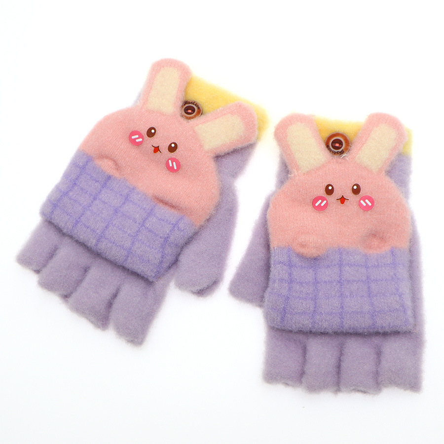 어린이 플립 장갑 겨울 새로운 중간 및 큰 어린이 만화 귀여운 토끼 반 손가락 학생 따뜻한 사이클링 쓰기스토어 가기