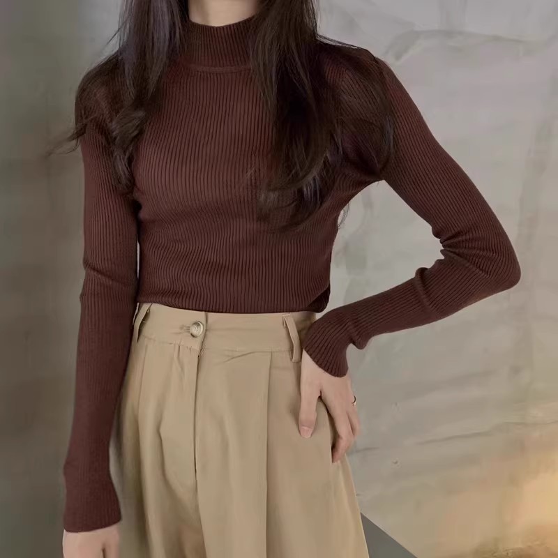 검은베이스 셔츠 여성용 내복 가을과 겨울 서양식 반 높이 목 두꺼운 스웨터 봄과 가을 니트웨어 프렌치 탑