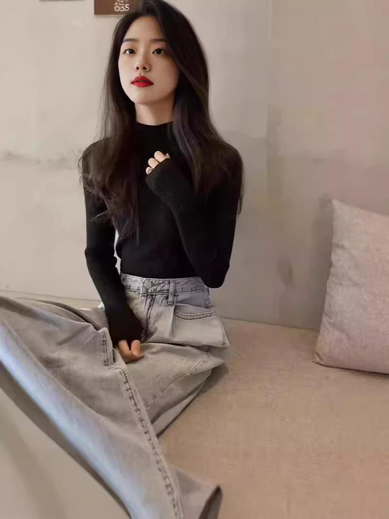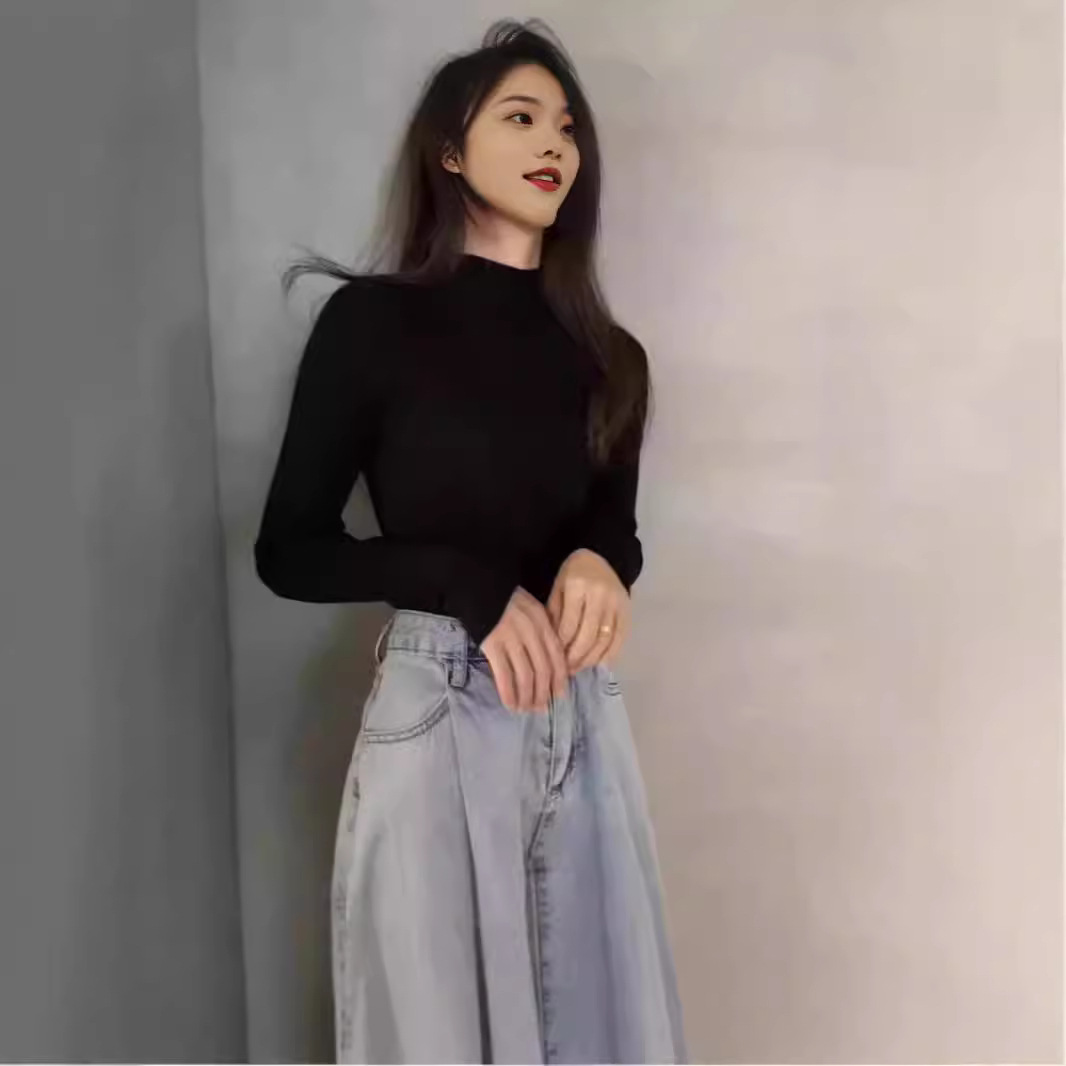 검은베이스 셔츠 여성용 내복 가을과 겨울 서양식 반 높이 목 두꺼운 스웨터 봄과 가을 니트웨어 프렌치 탑스토어 가기