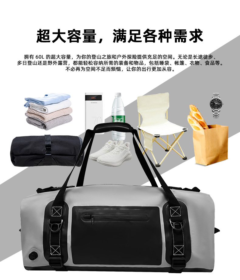 아마존 베스트셀러 캠핑 및 등산 가방 PVC 방수 가방 60L 대용량 수하물 가방 오토바이 테일 백