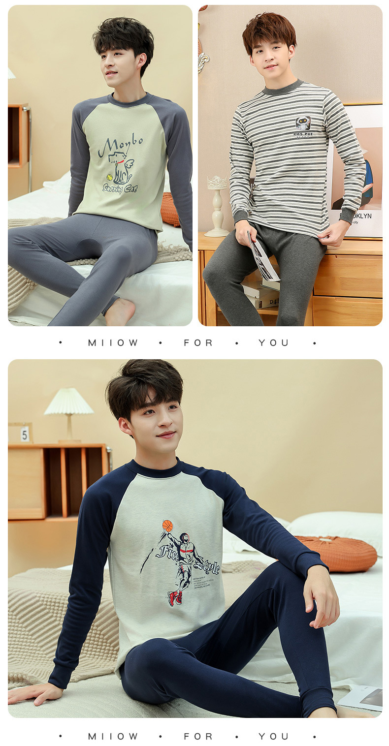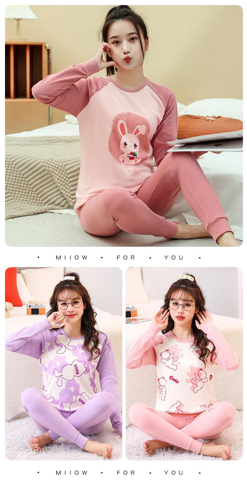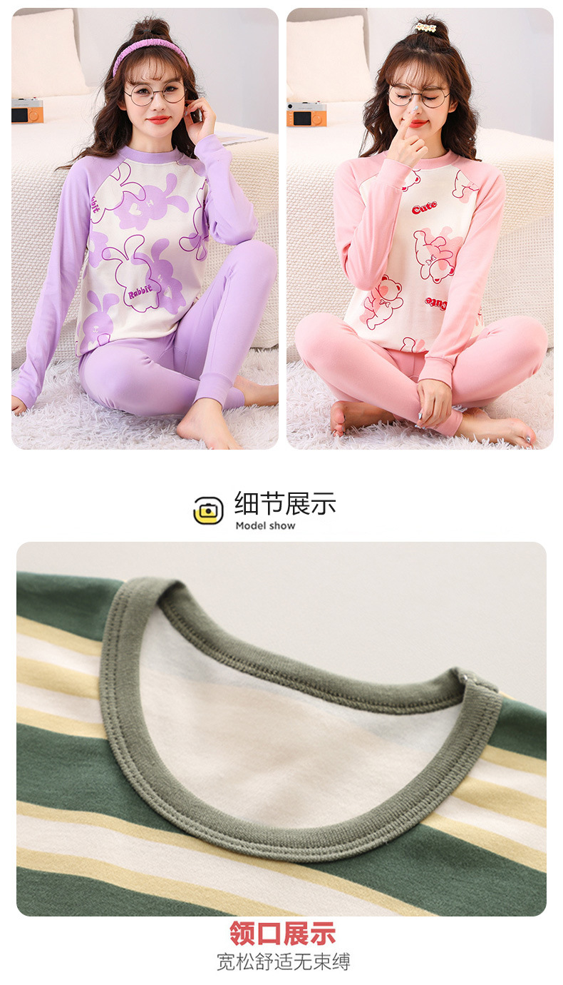 십대 가을 옷과 바지 남자 세트 고등학교 및 중학생을위한 순면 열 속옷 여성 빅 어린이 순면 스웨터 파자마