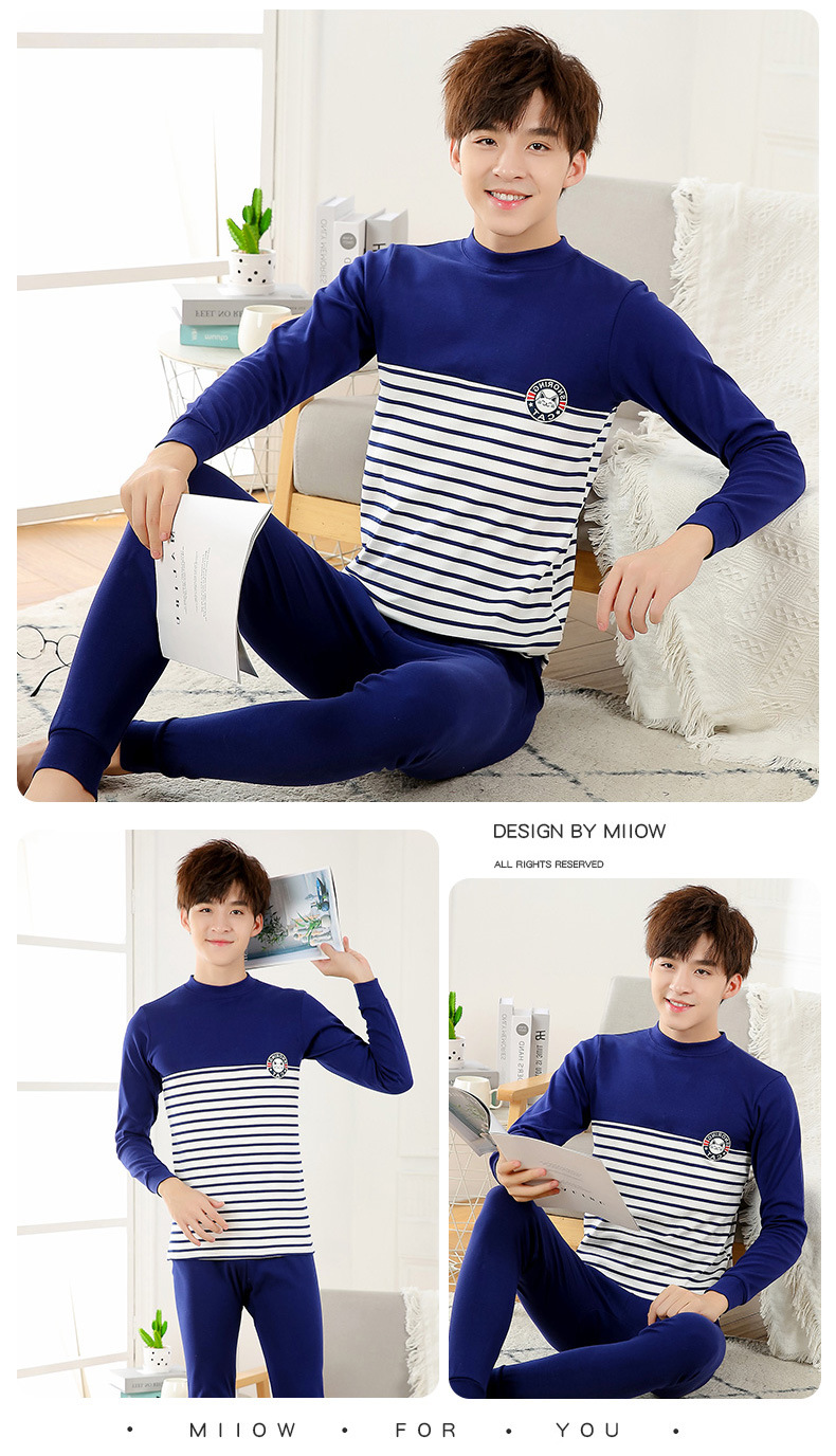 십대 가을 옷과 바지 남자 세트 고등학교 및 중학생을위한 순면 열 속옷 여성 빅 어린이 순면 스웨터 파자마스토어 가기
