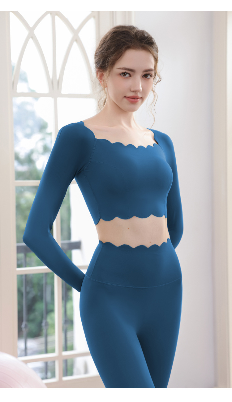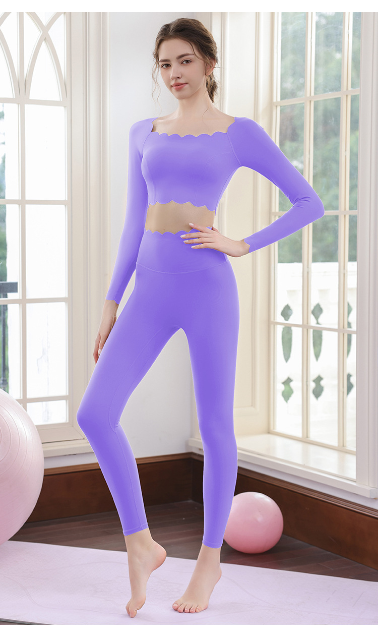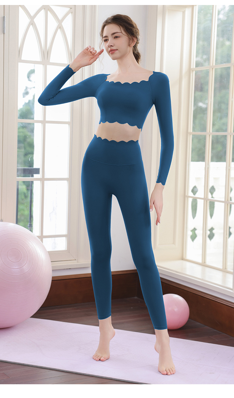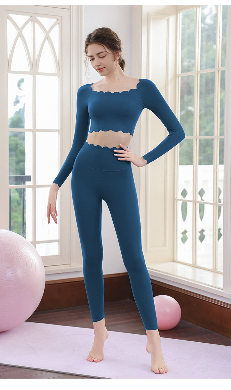 요가 의류 세트 여성용 도파민 고급 필라테스 긴팔 레이스 탑 달리기 피트니스 의류 타이트 바지스토어 가기