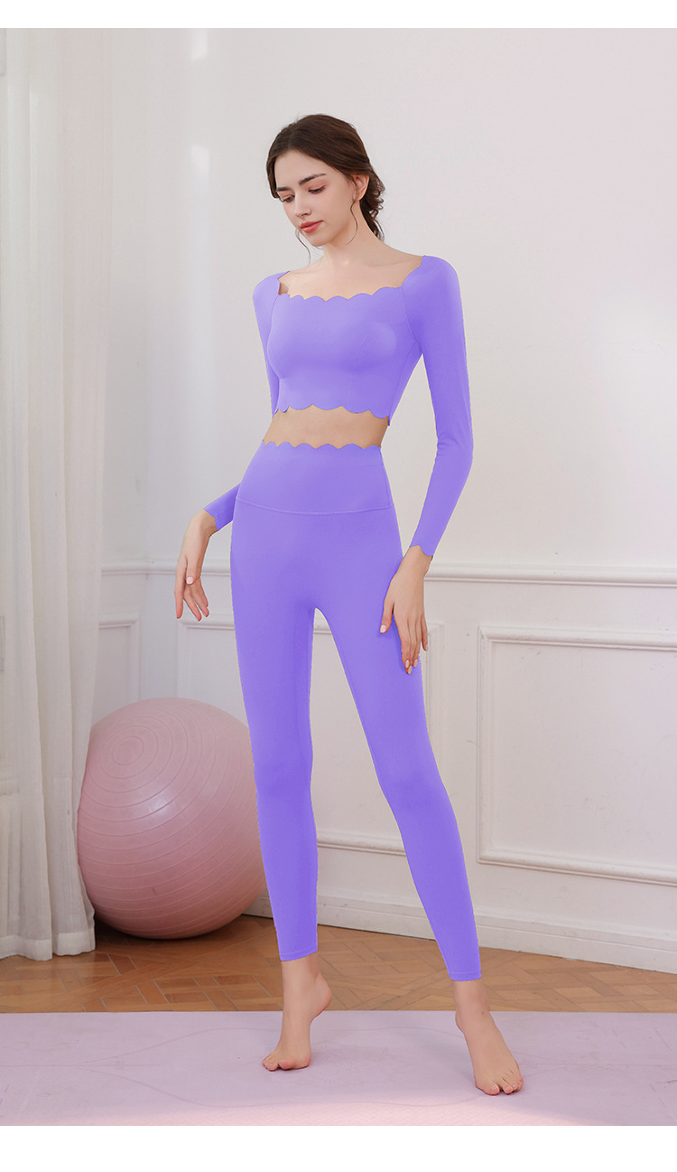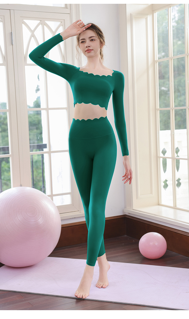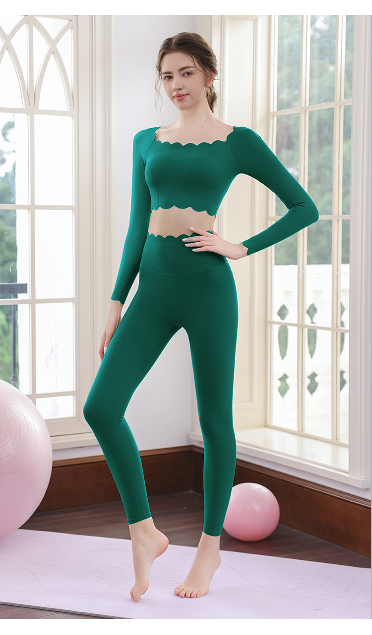 요가 의류 세트 여성용 도파민 고급 필라테스 긴팔 레이스 탑 달리기 피트니스 의류 타이트 바지스토어 가기