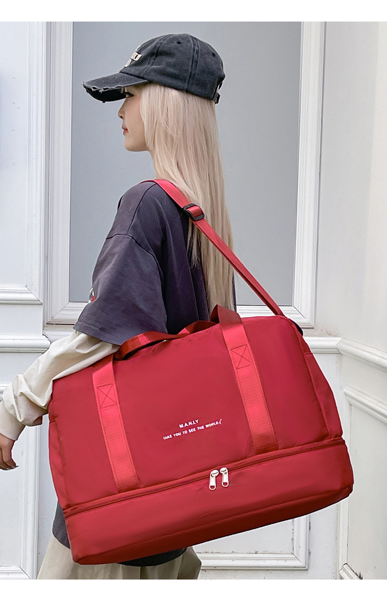 여행 가방 여성의 건조하고 젖은 분리 체육관 가방 남성과 여성 저장 가방 대용량 핸드백 발수성 단거리 수하물 가방