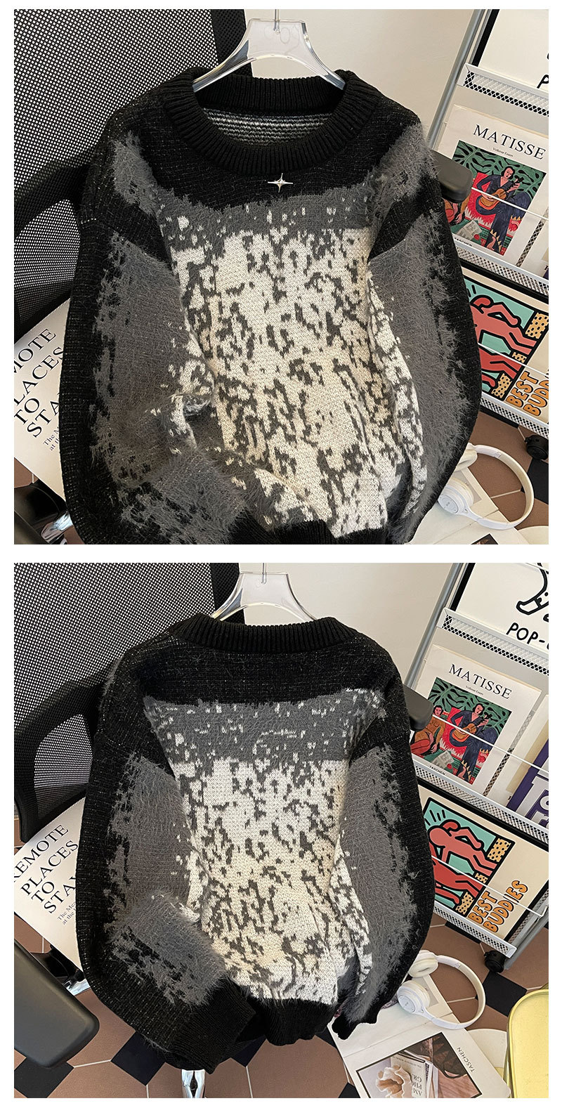 2024 가을과 겨울 새로운 한국 스타일 느슨한 게으른 스타일 부드러운 왁스 스웨터 디자인 센스 니쉬 니트 셔츠 탑스토어 가기