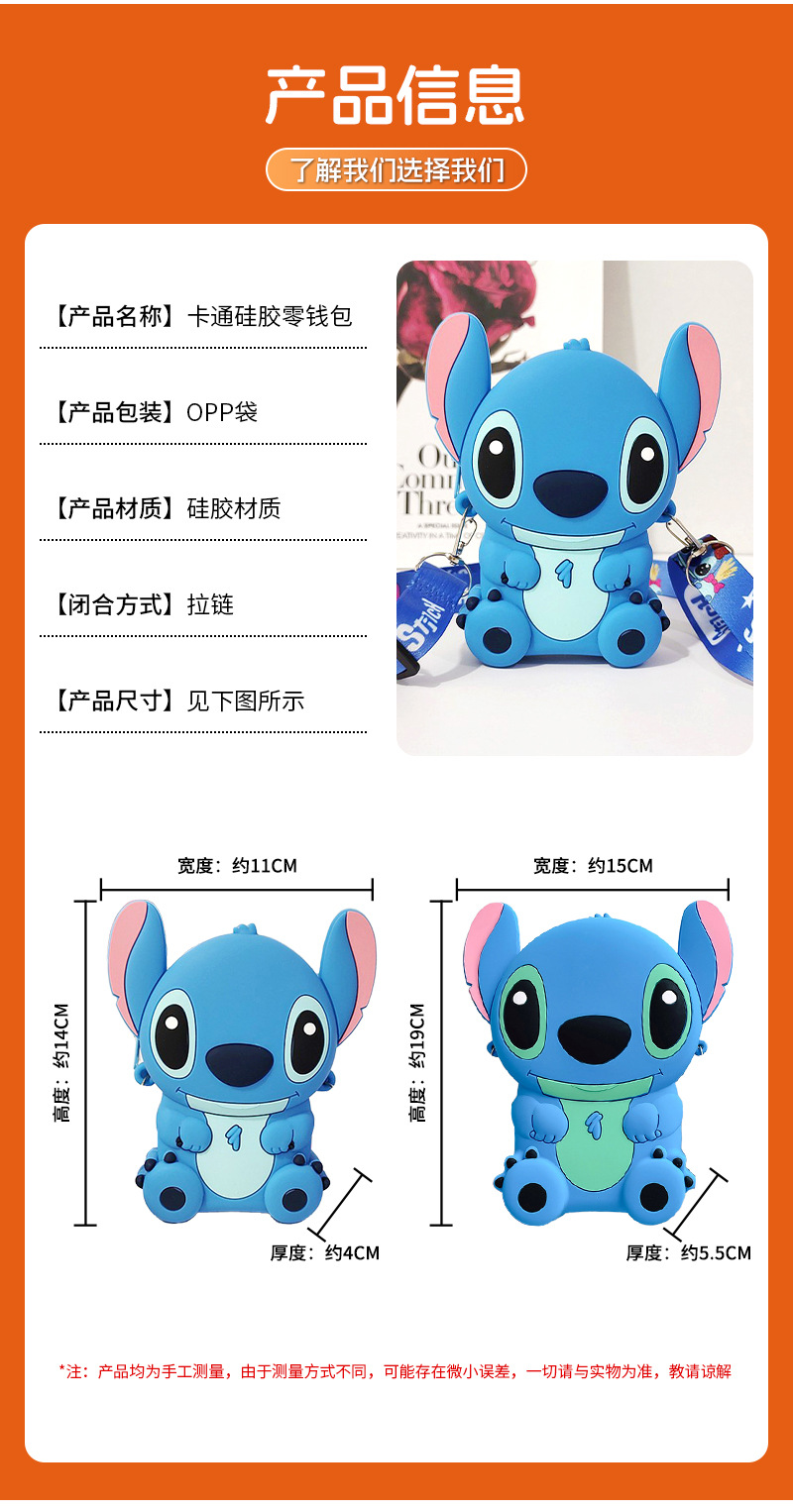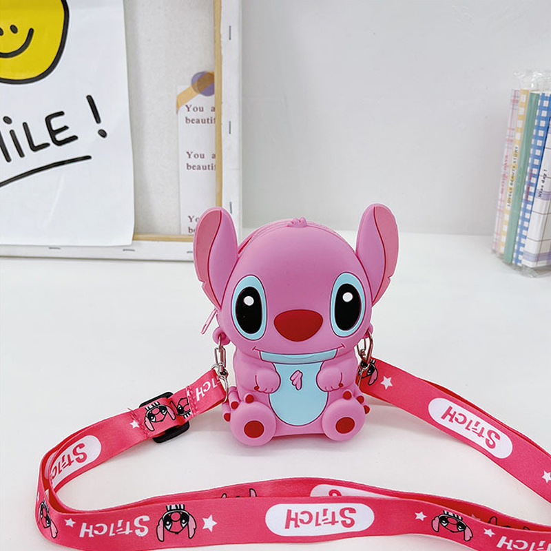 여자를위한 국경 간 새로운 실리콘 가방 만화 어린이 가방 중간 크기 귀여운 스티치 작은 어깨 가방 열쇠 동전 지갑스토어 가기