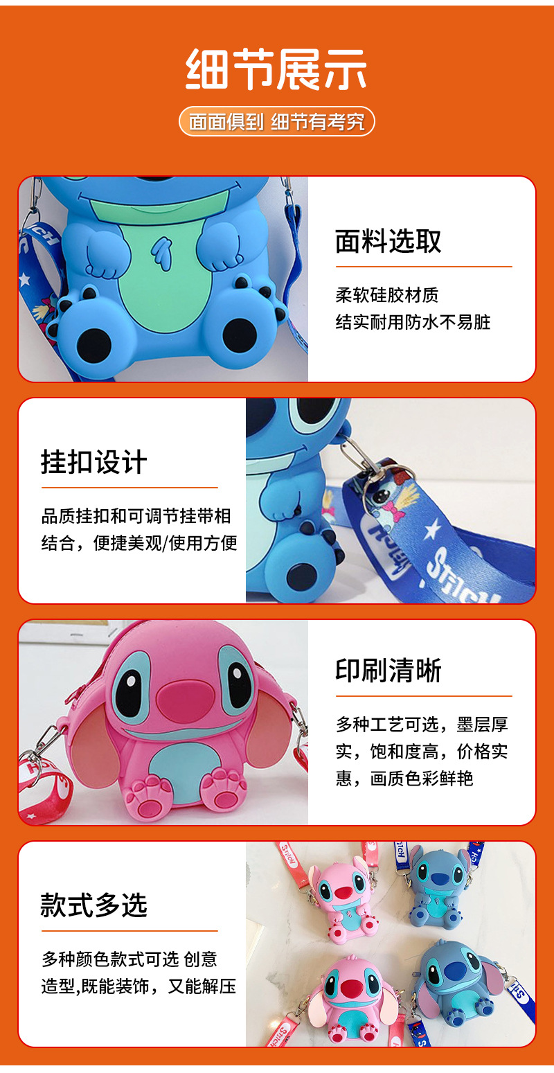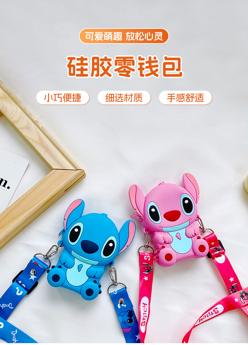여자를위한 국경 간 새로운 실리콘 가방 만화 어린이 가방 중간 크기 귀여운 스티치 작은 어깨 가방 열쇠 동전 지갑