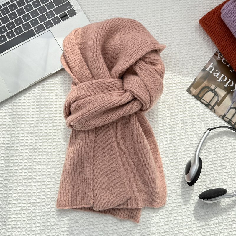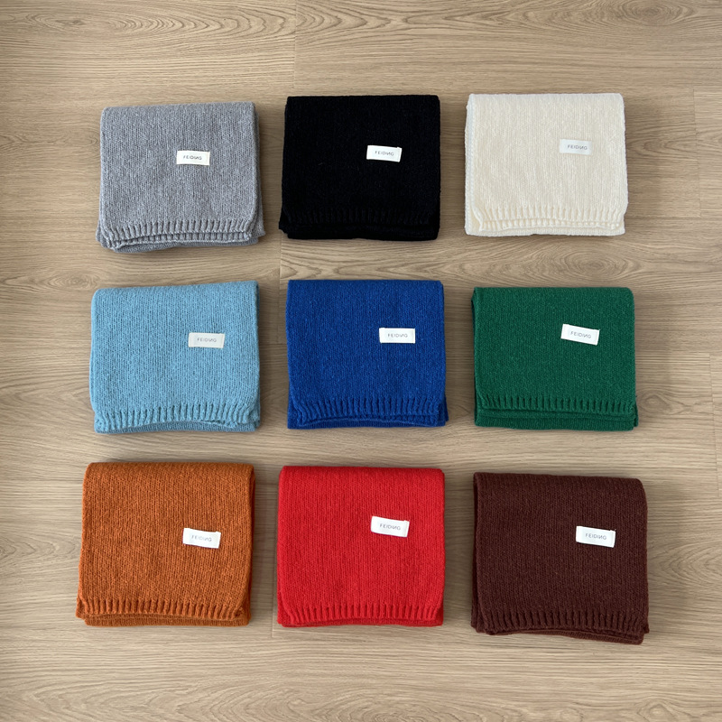 한국 스타일의 무지 니트 스카프 여성용 가을 겨울용 모조 캐시미어 겨울 보온 스카프 남성용 도매스토어 가기