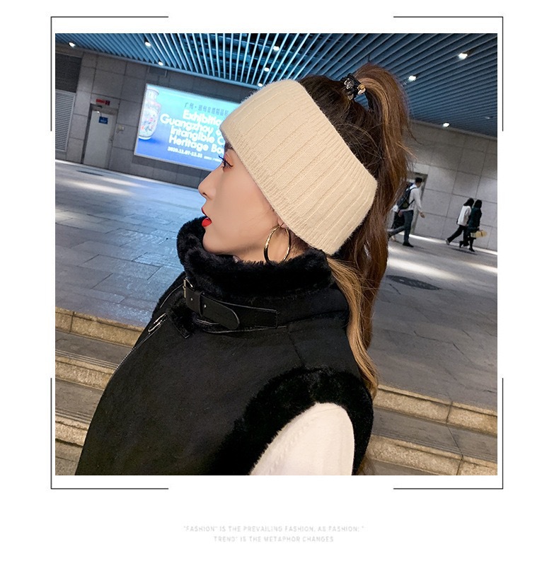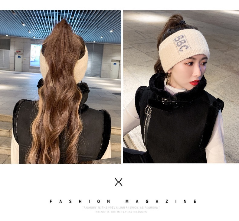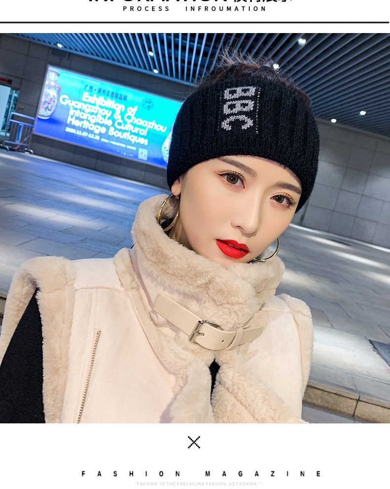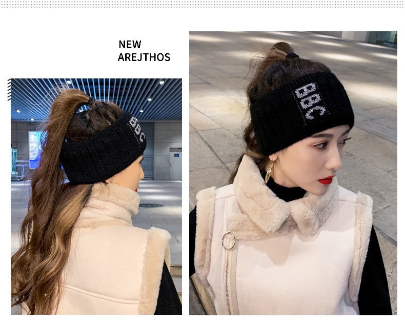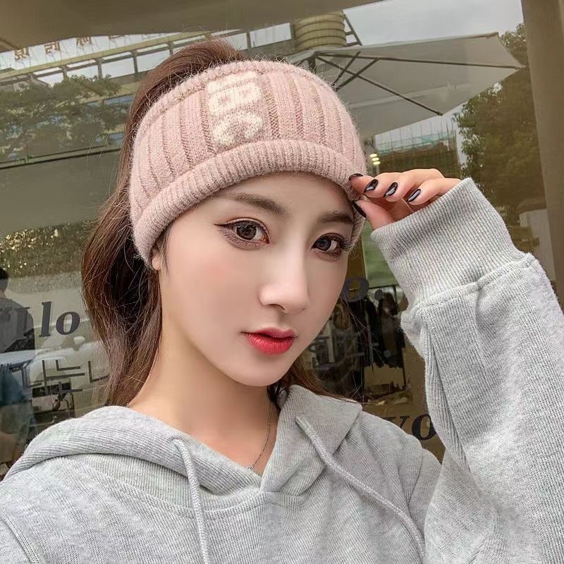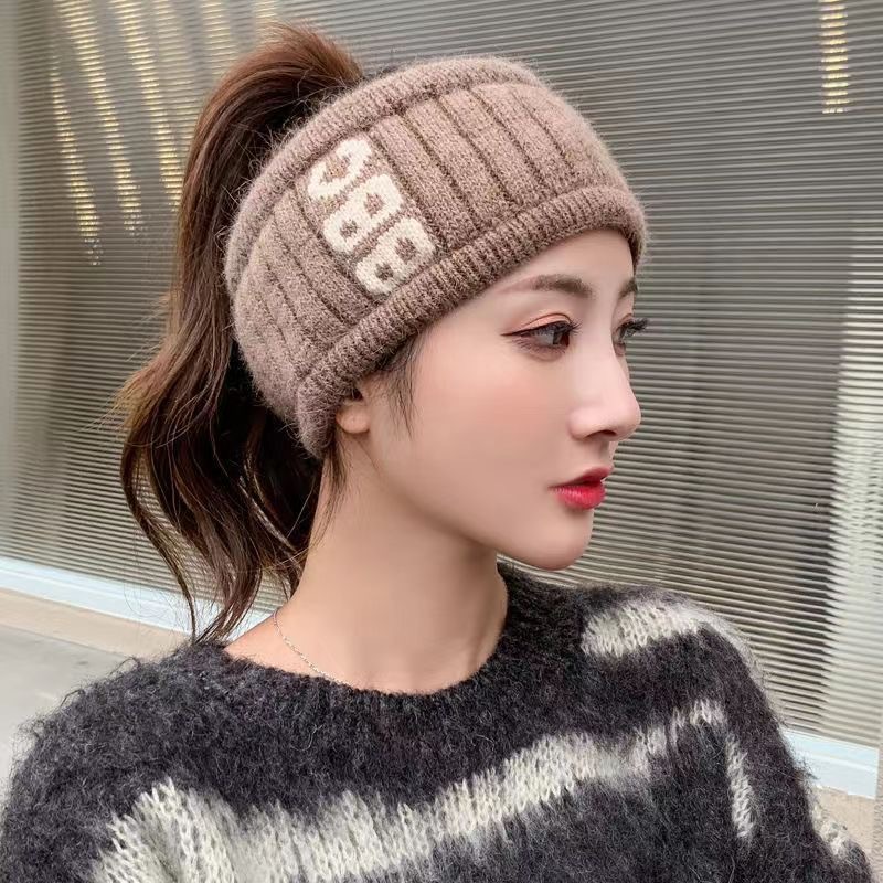 한국 스타일 겨울 니트 양모 모자 여성 인터넷 인기 일본식 스포츠 가방 모자 빈 탑 포네테일 모자 헤어 벨트 풀오버 모자스토어 가기