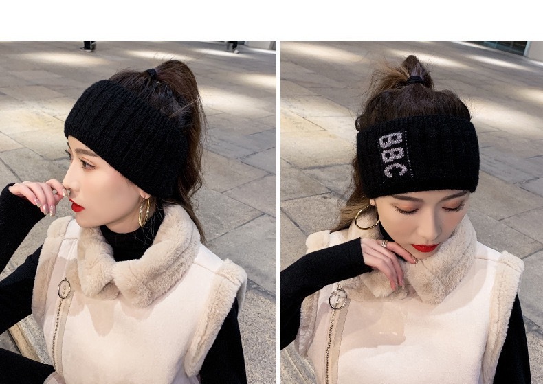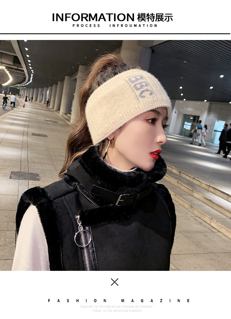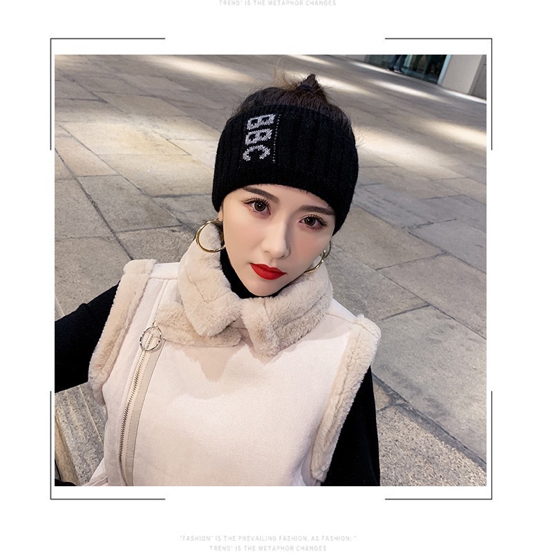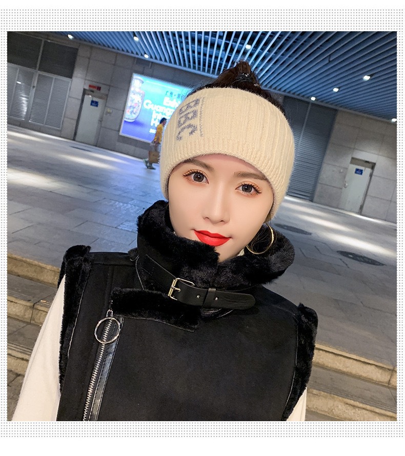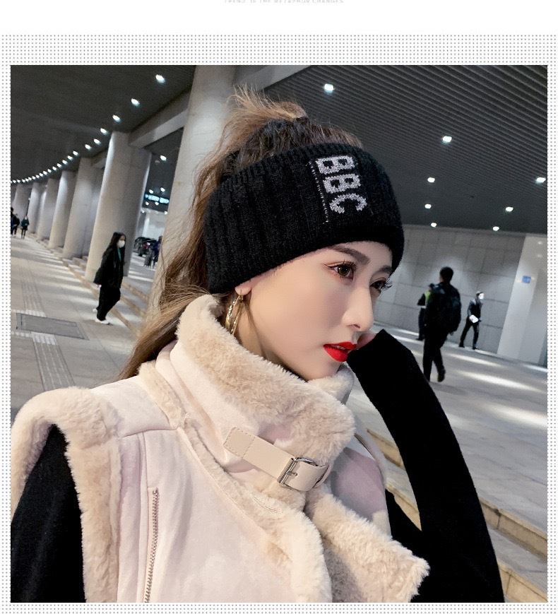 한국 스타일 겨울 니트 양모 모자 여성 인터넷 인기 일본식 스포츠 가방 모자 빈 탑 포네테일 모자 헤어 벨트 풀오버 모자스토어 가기