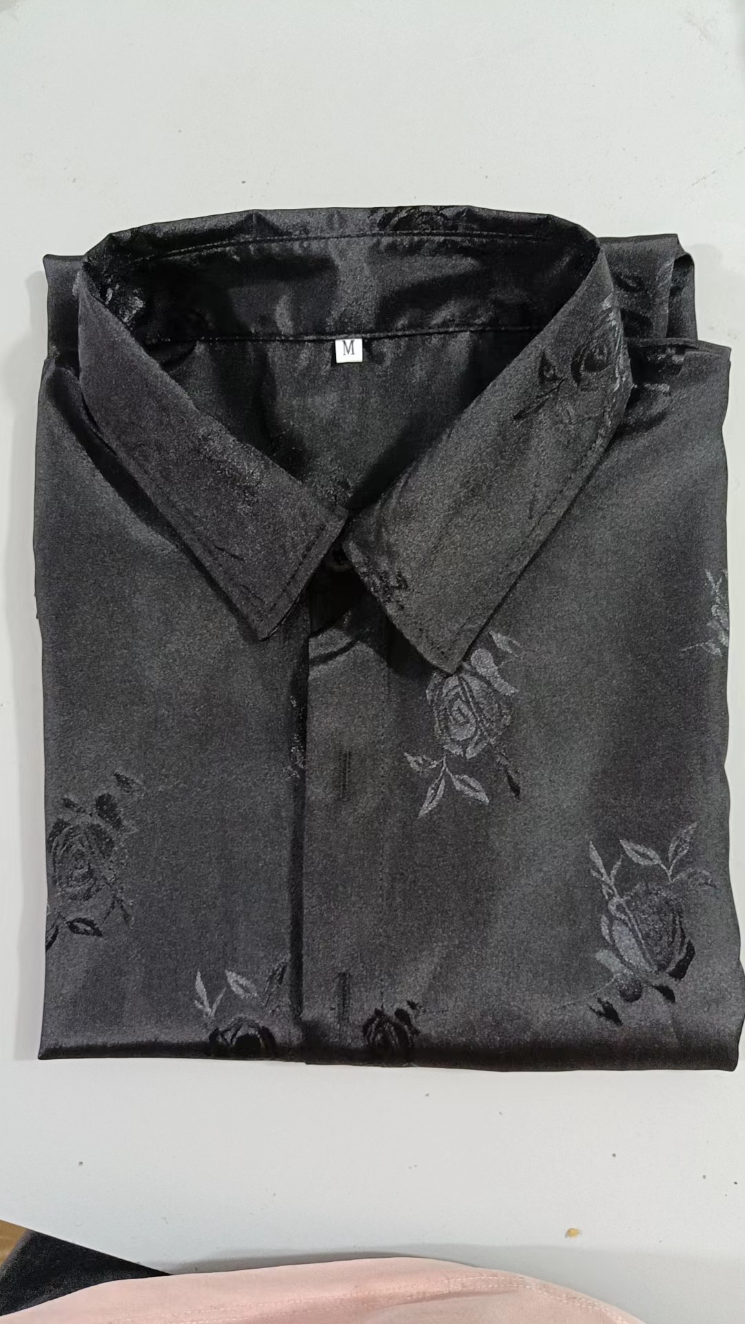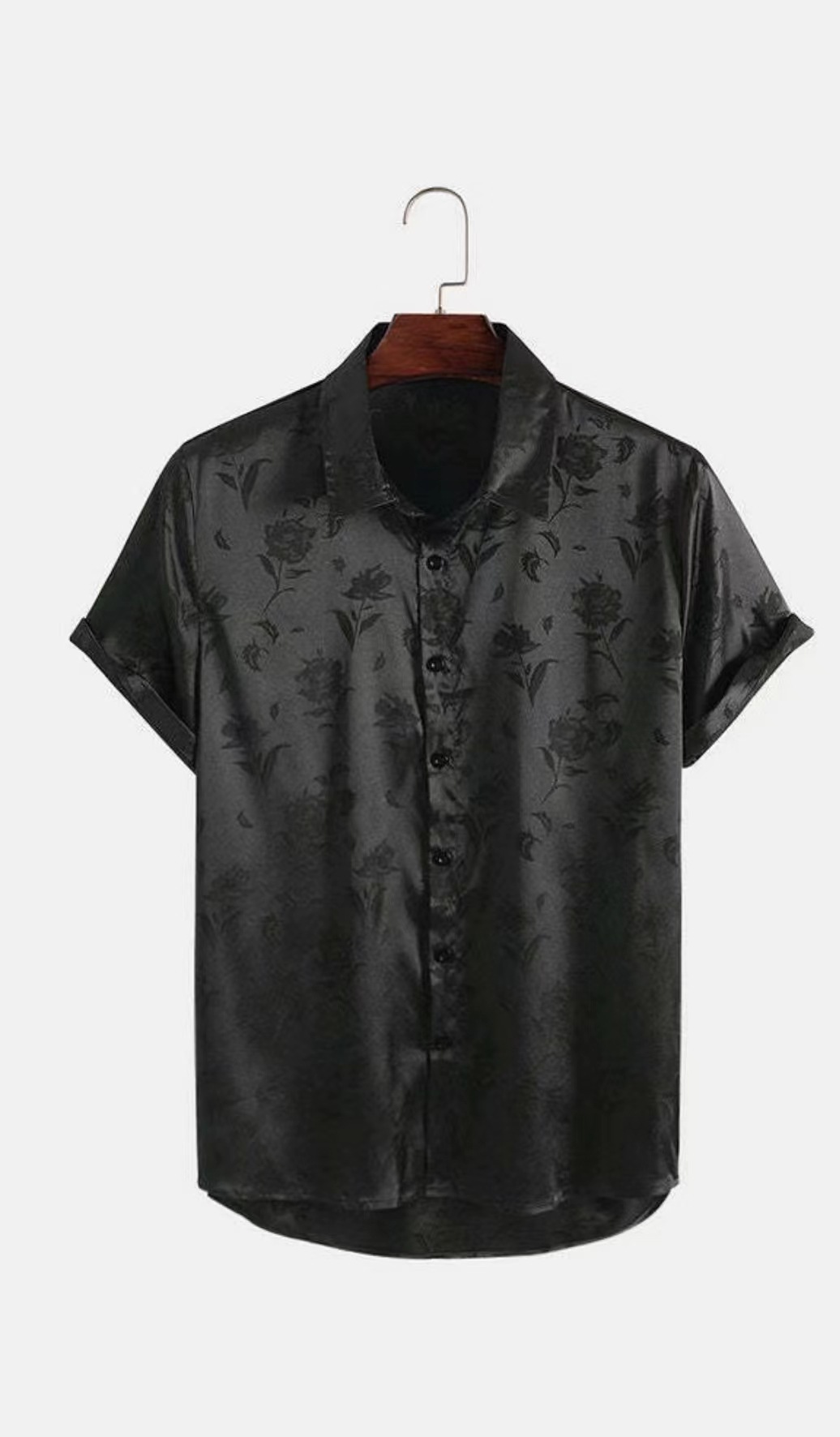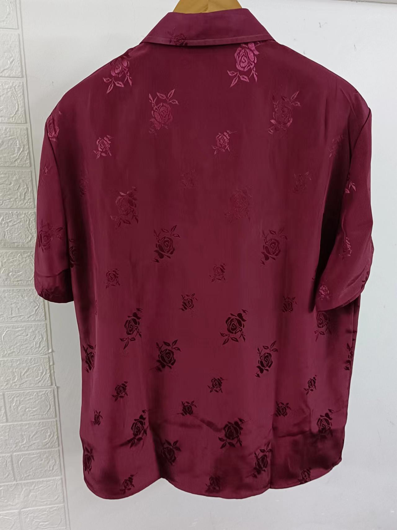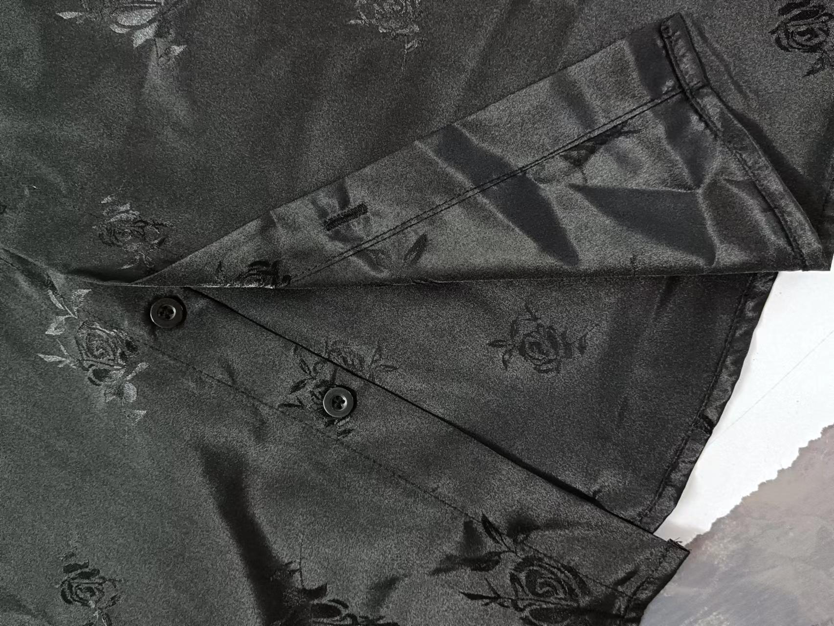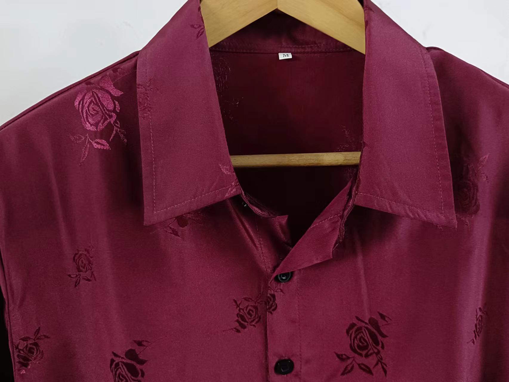 2023년 크로스보더 아마존 남성용 반팔 셔츠, 새틴 자카드 라펠 버튼, 남성 캐주얼 만능 셔츠, 여름 전용스토어 가기
