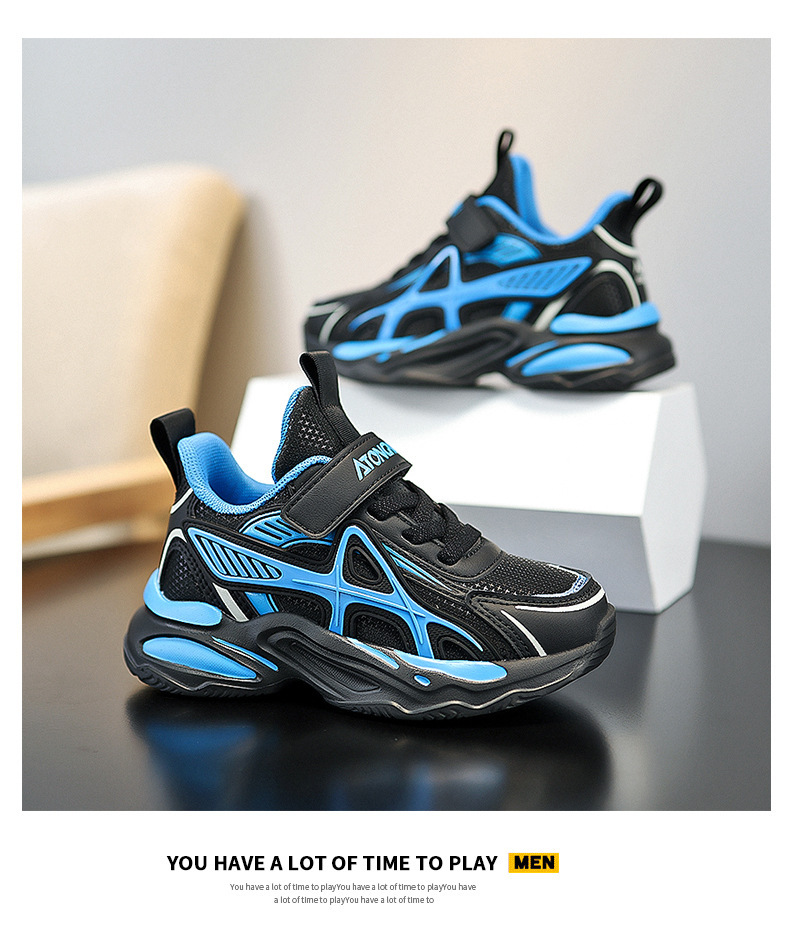 아스트로 소년 신발 봄과 가을 새로운 방수 가죽 어린이 운동화 통기성 메쉬 달리기 신발