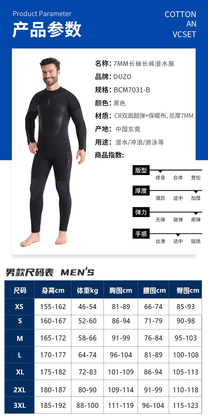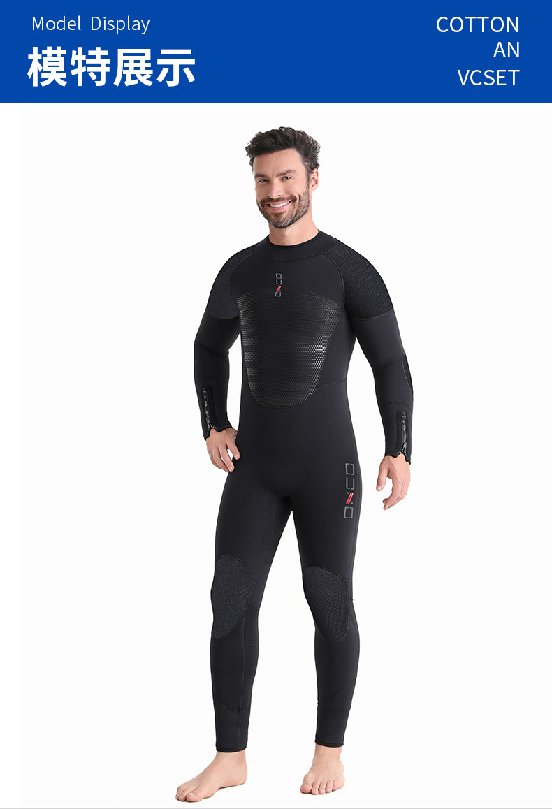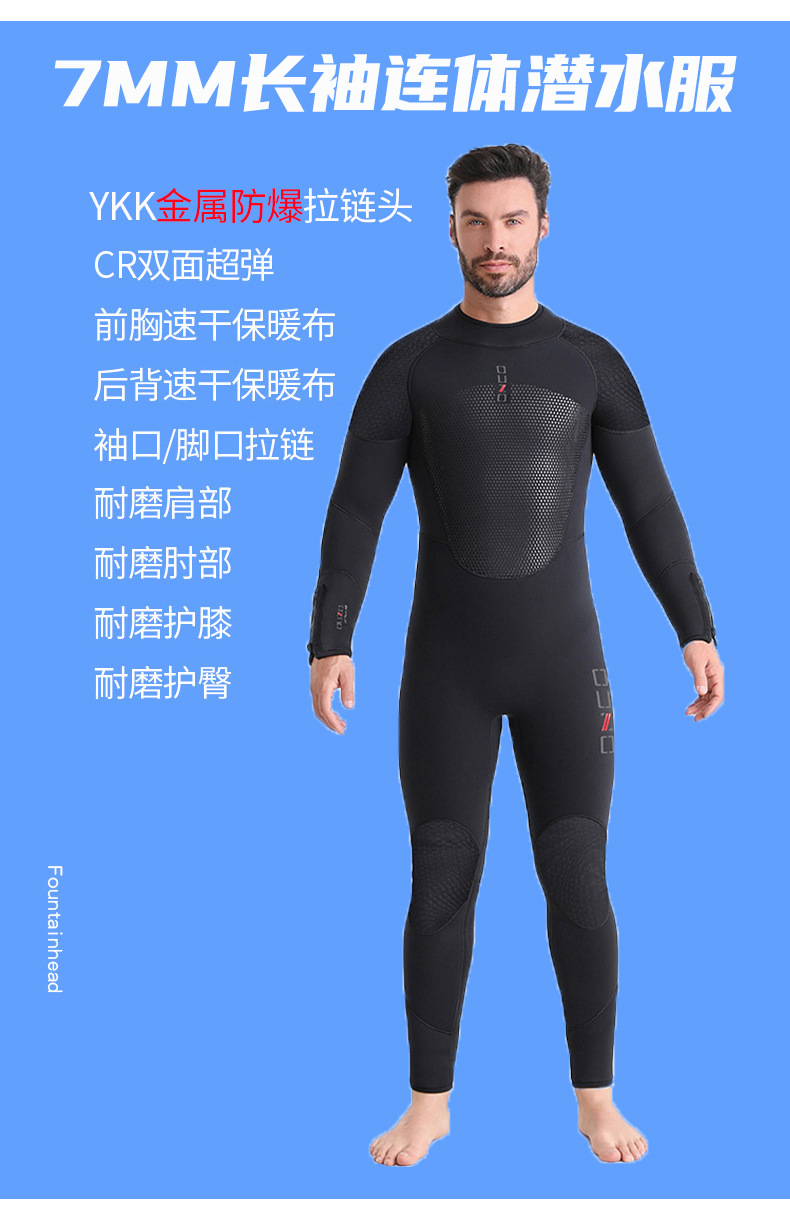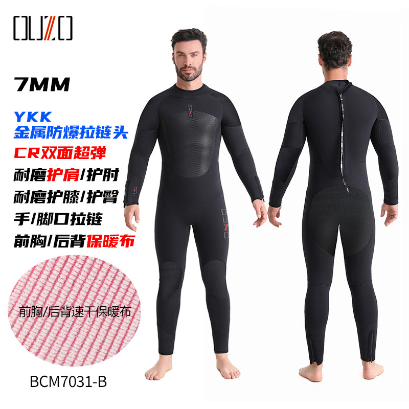 OUZO7mm潜水服CR超弹长袖连体冲浪服加厚防寒保暖自由潜潜水湿衣