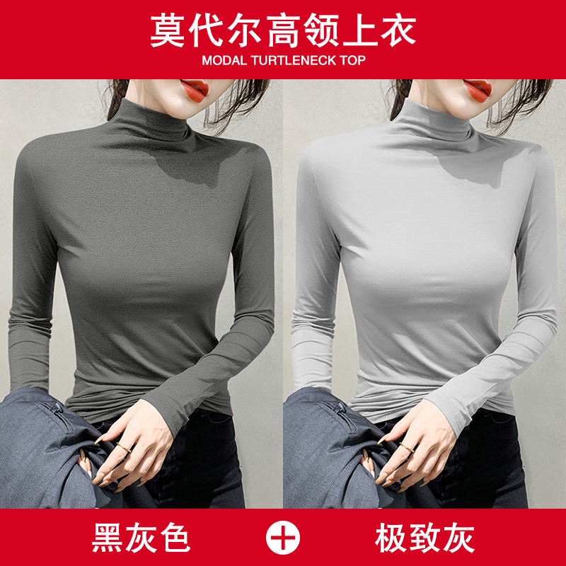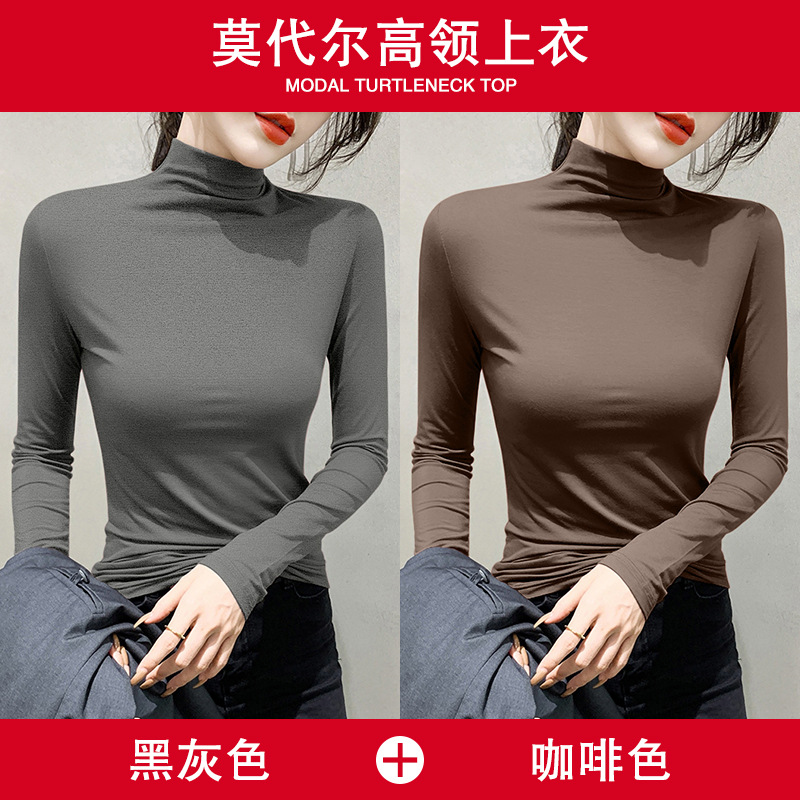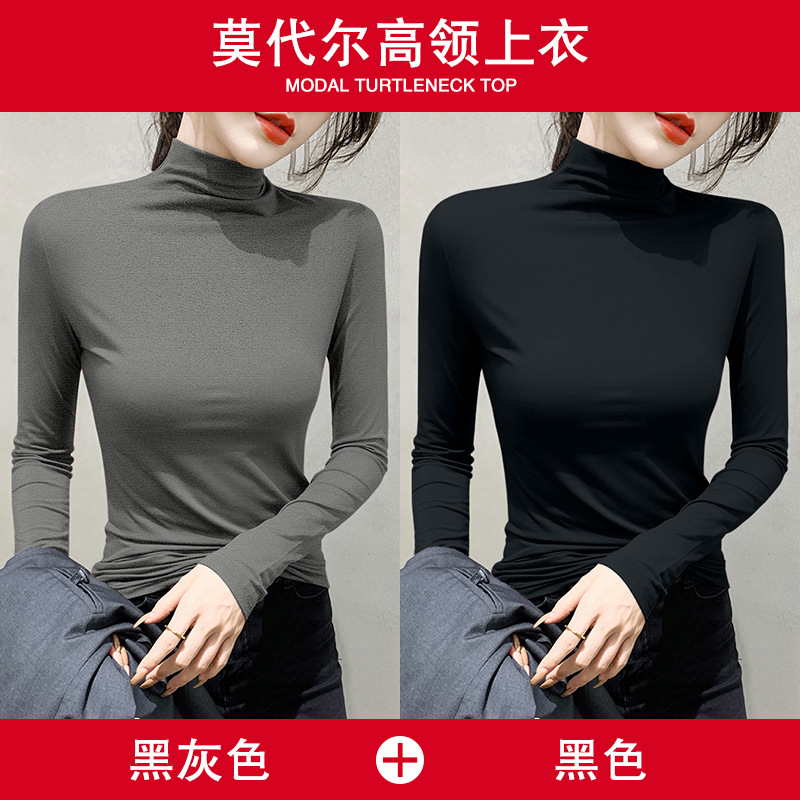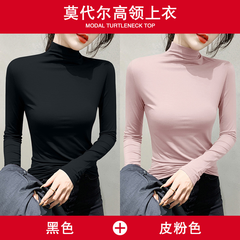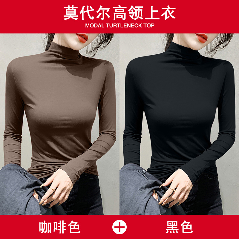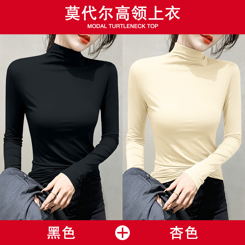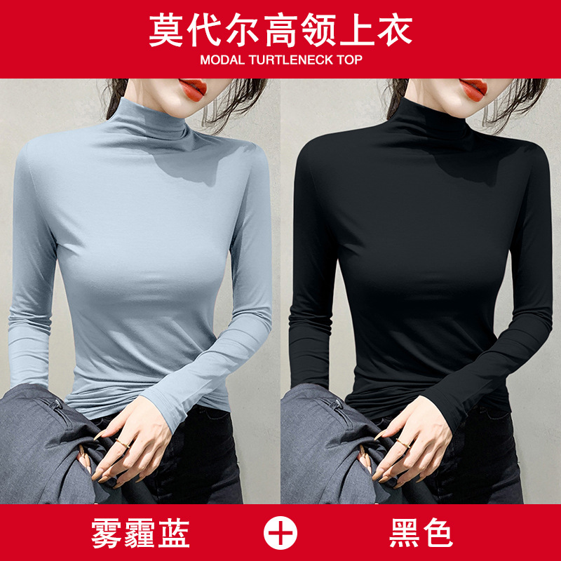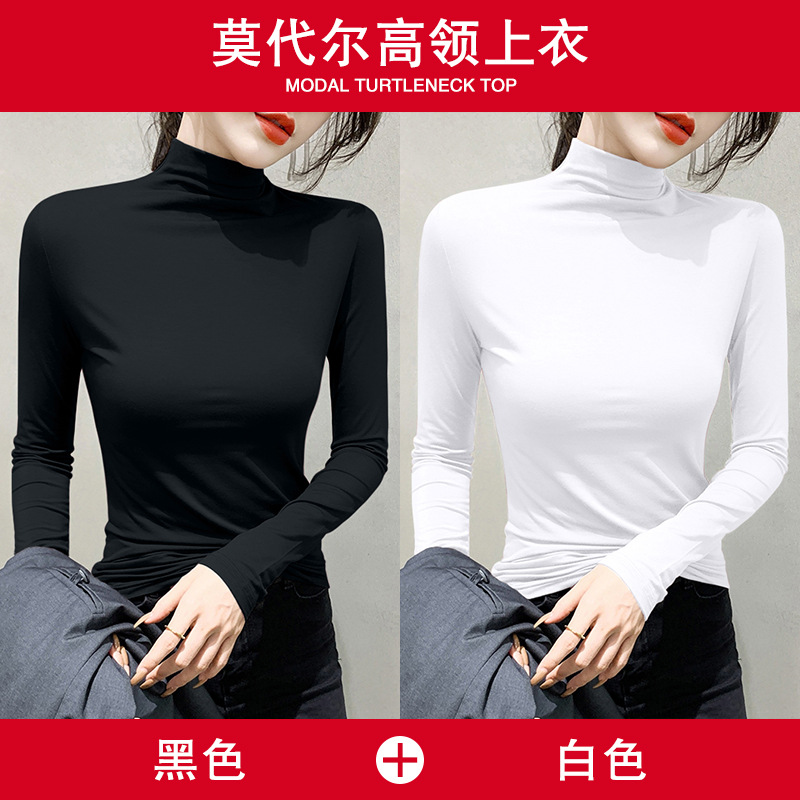 여성용 모달 블랙 하프 터틀넥 이너웨어 가을 슬림핏 긴팔 티셔츠 미드넥 얇은 상의스토어 가기