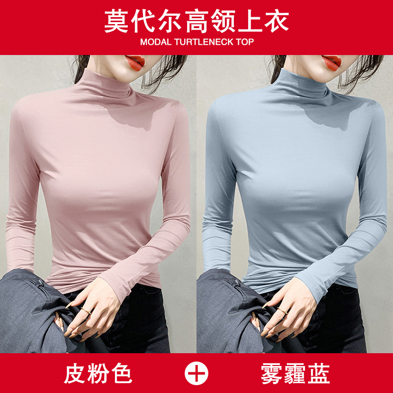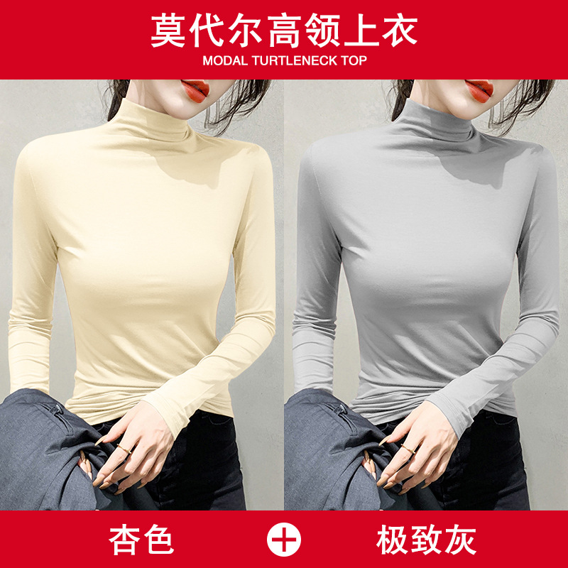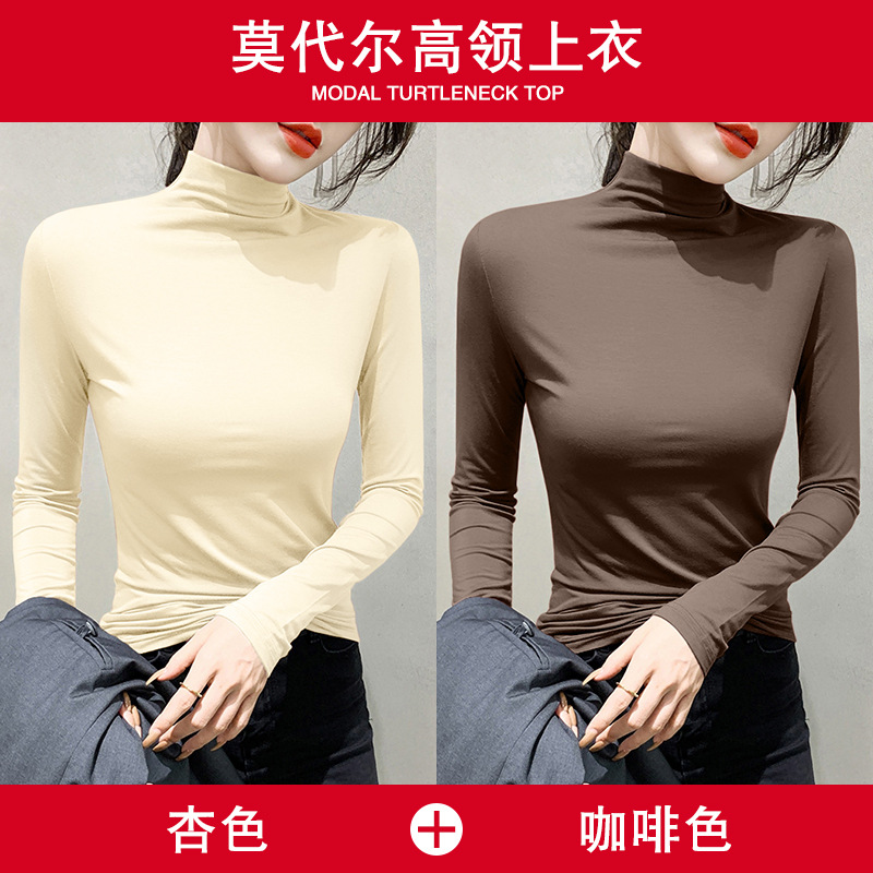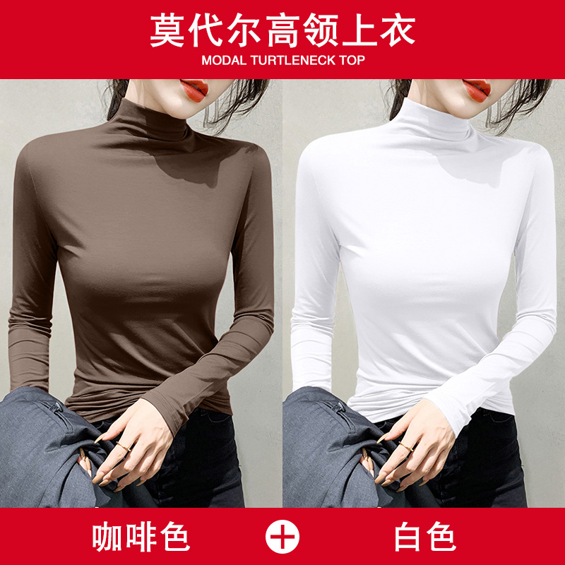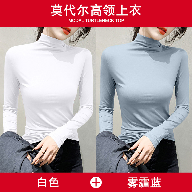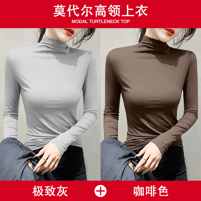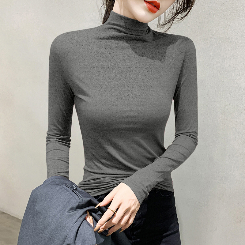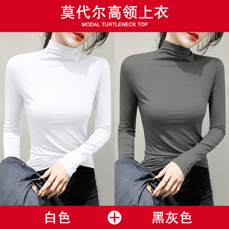 여성용 모달 블랙 하프 터틀넥 이너웨어 가을 슬림핏 긴팔 티셔츠 미드넥 얇은 상의스토어 가기