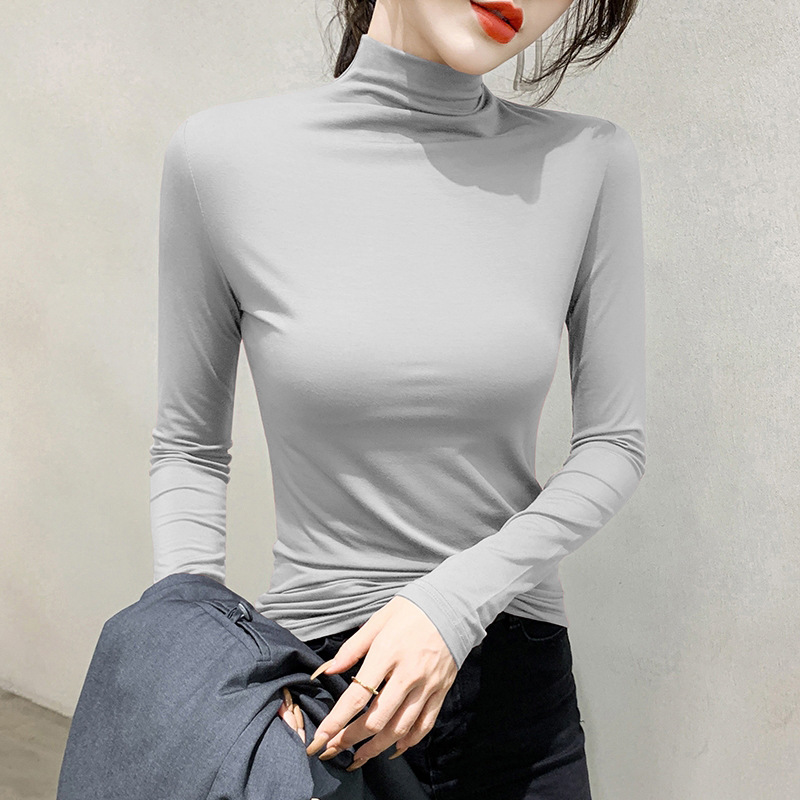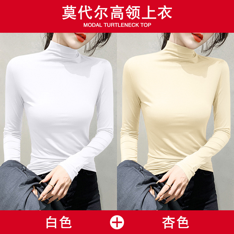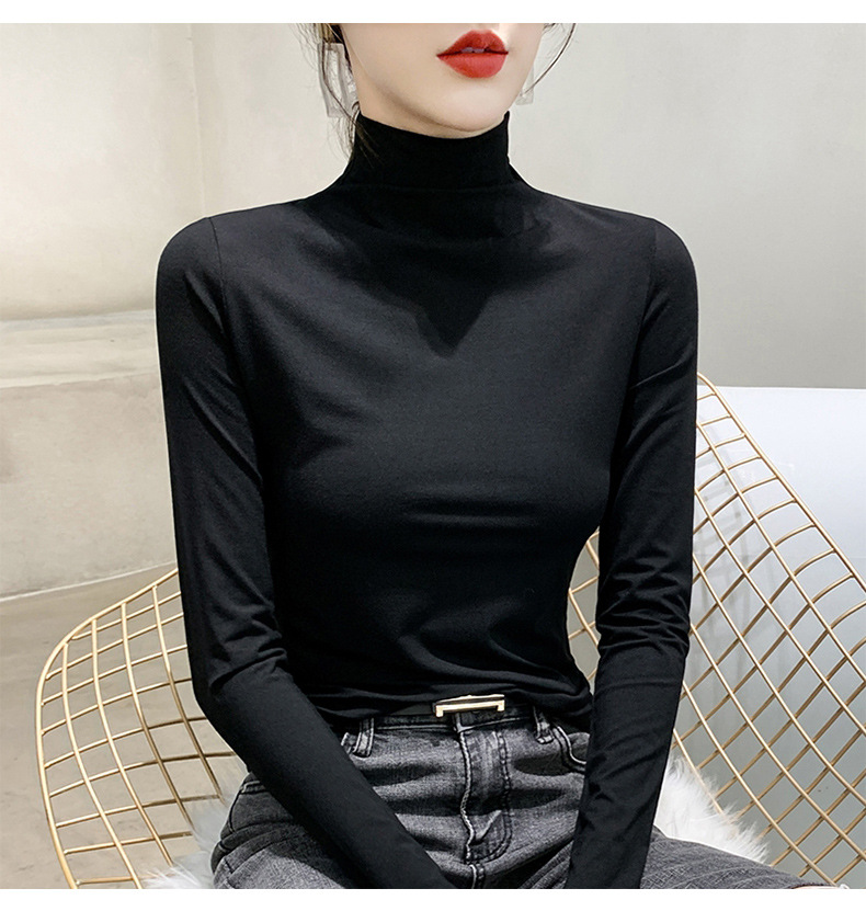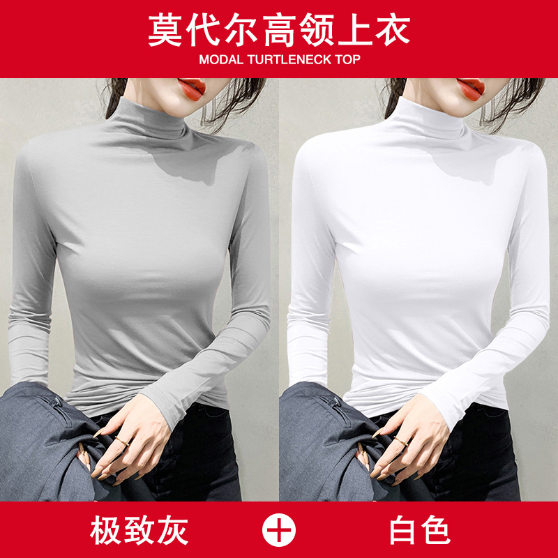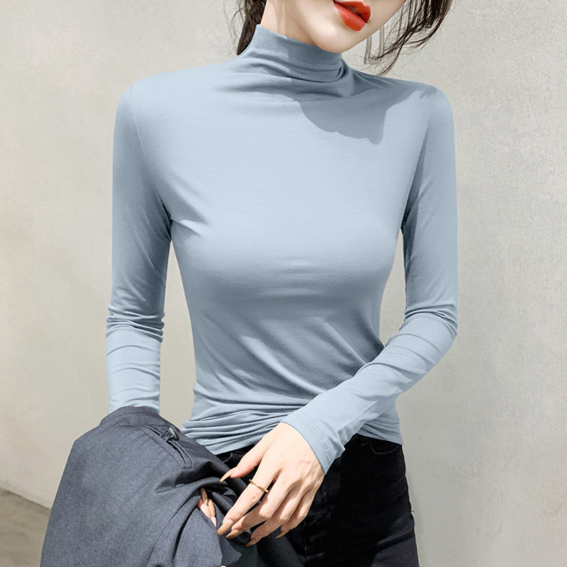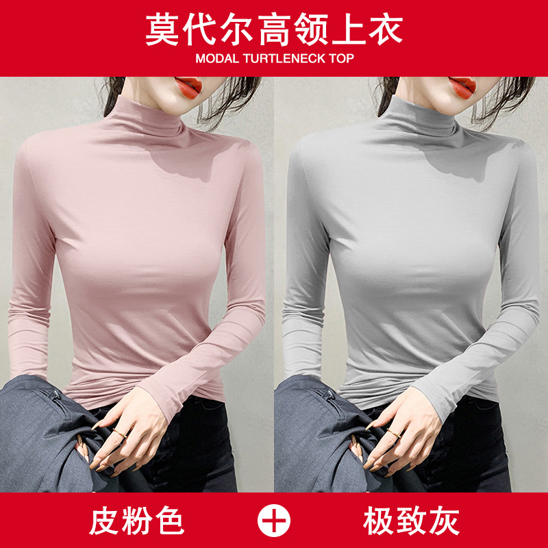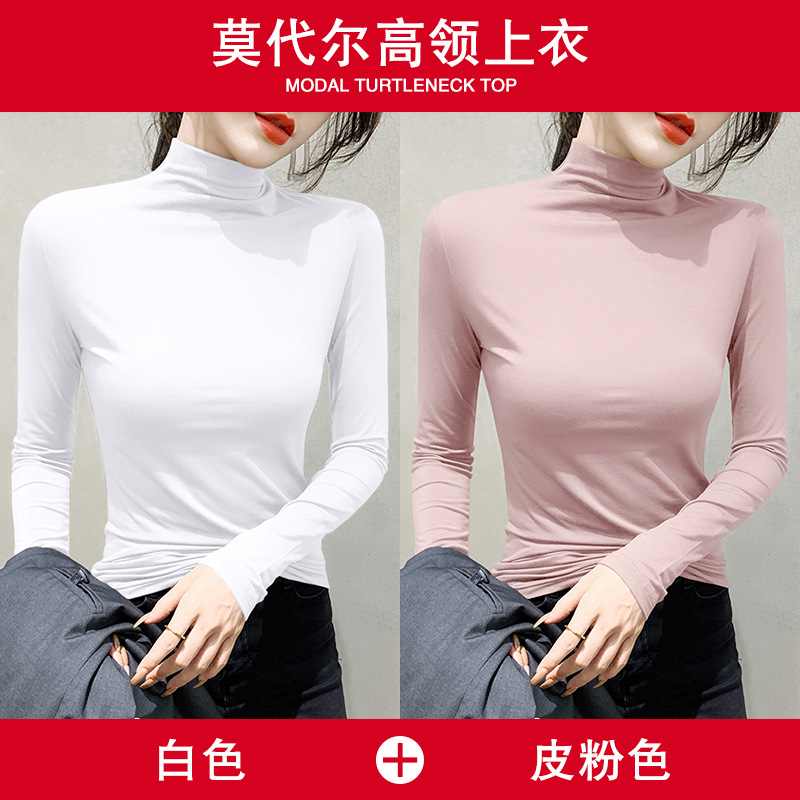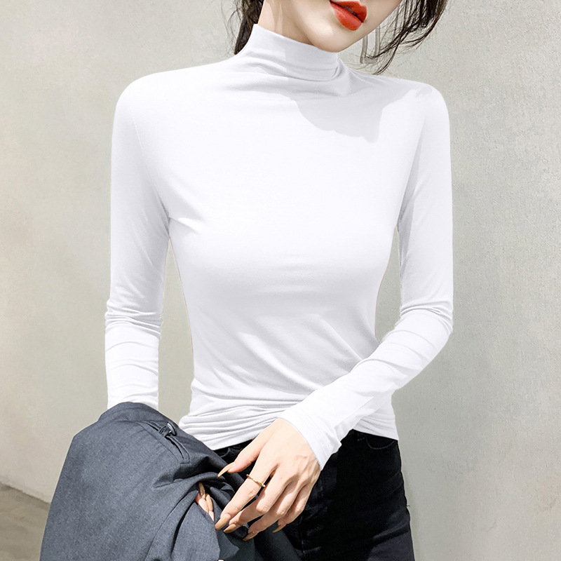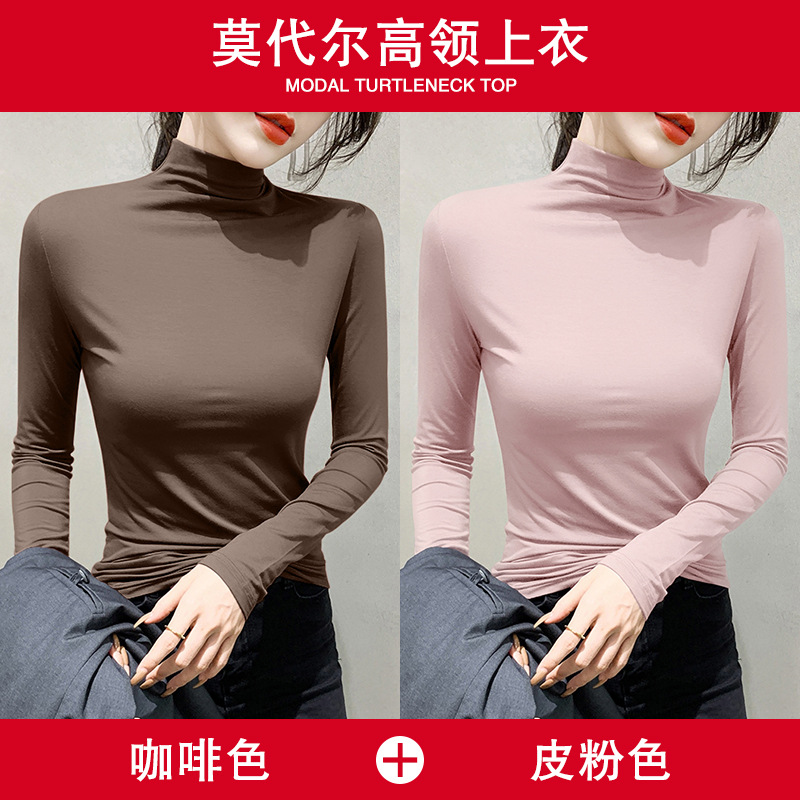 여성용 모달 블랙 하프 터틀넥 이너웨어 가을 슬림핏 긴팔 티셔츠 미드넥 얇은 상의스토어 가기