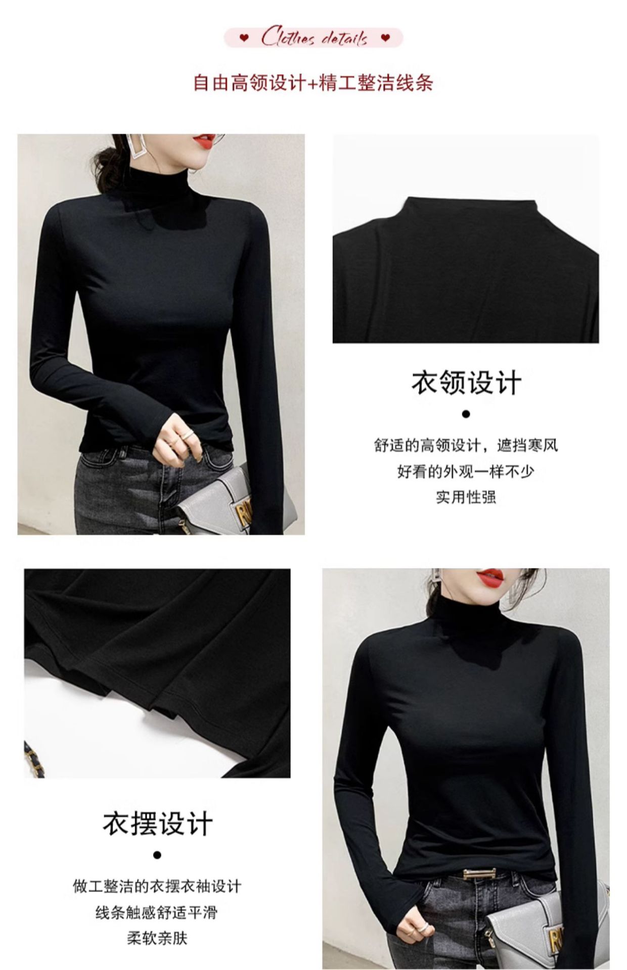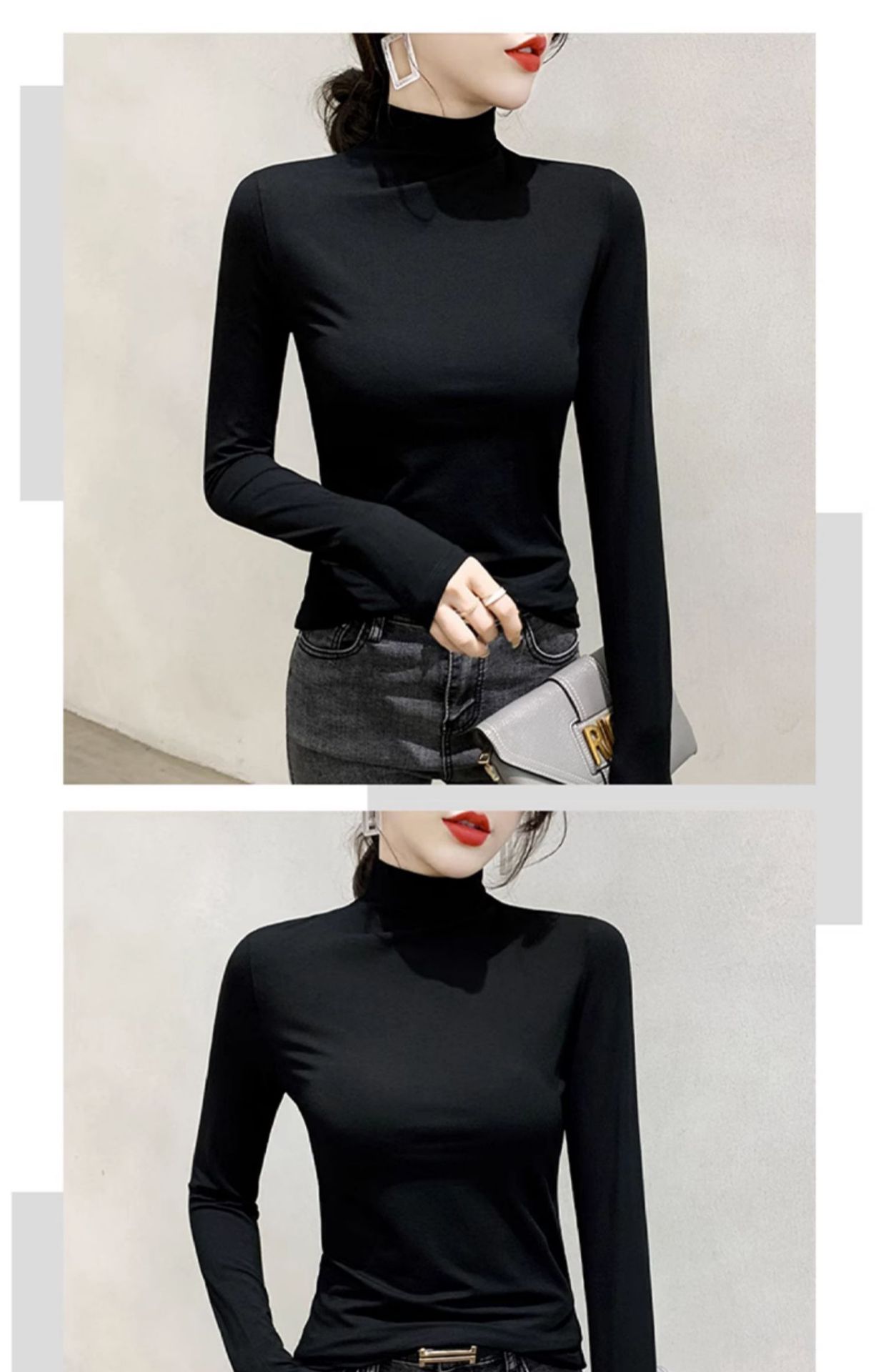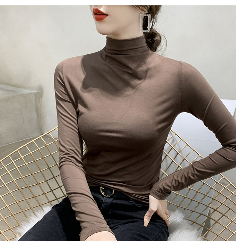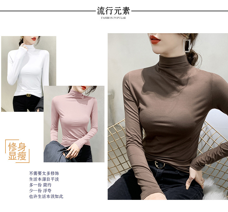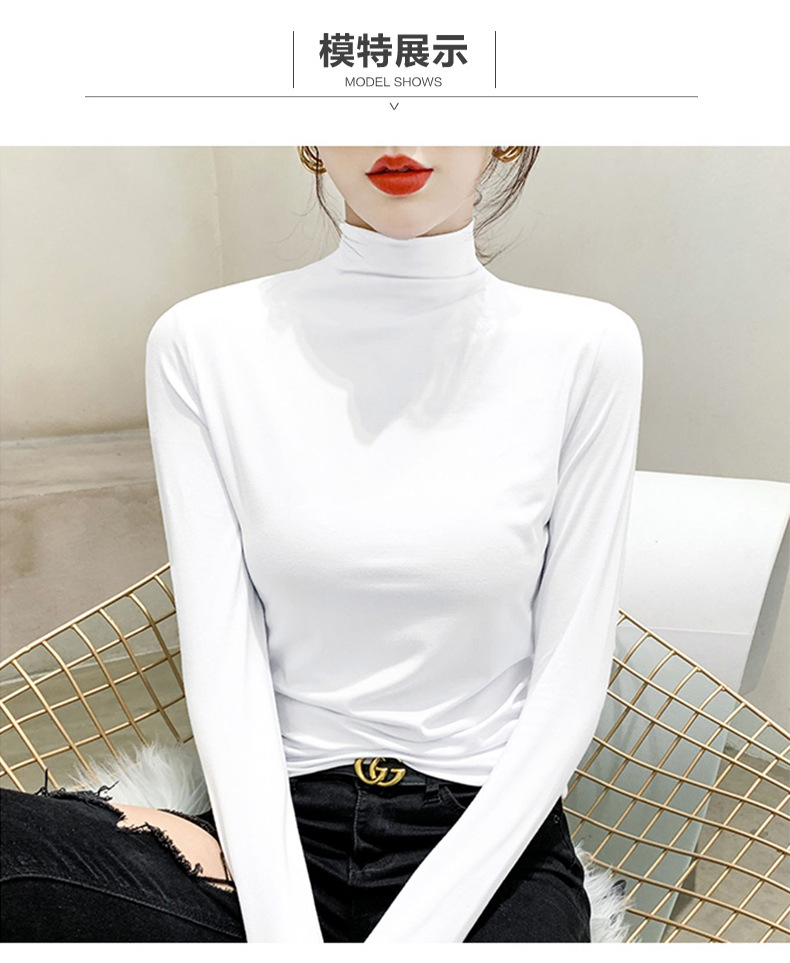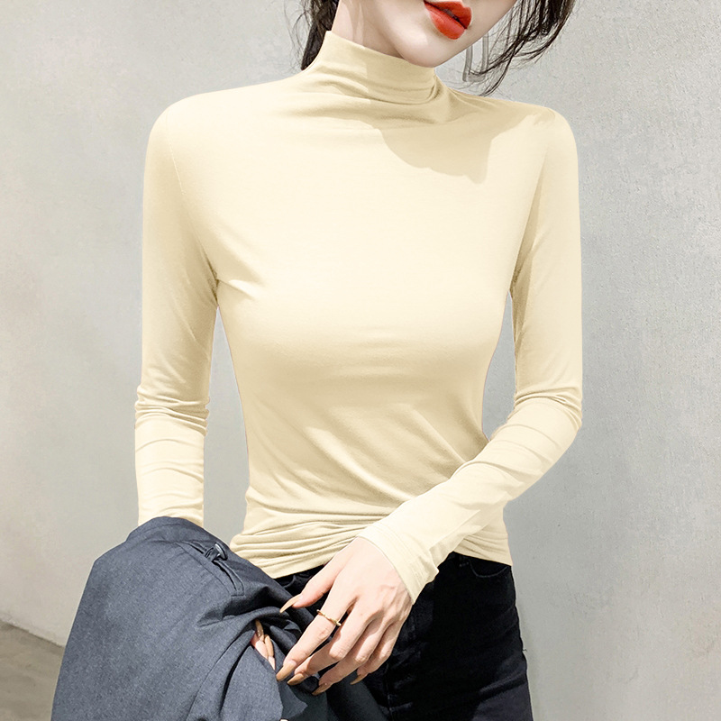 여성용 모달 블랙 하프 터틀넥 이너웨어 가을 슬림핏 긴팔 티셔츠 미드넥 얇은 상의스토어 가기