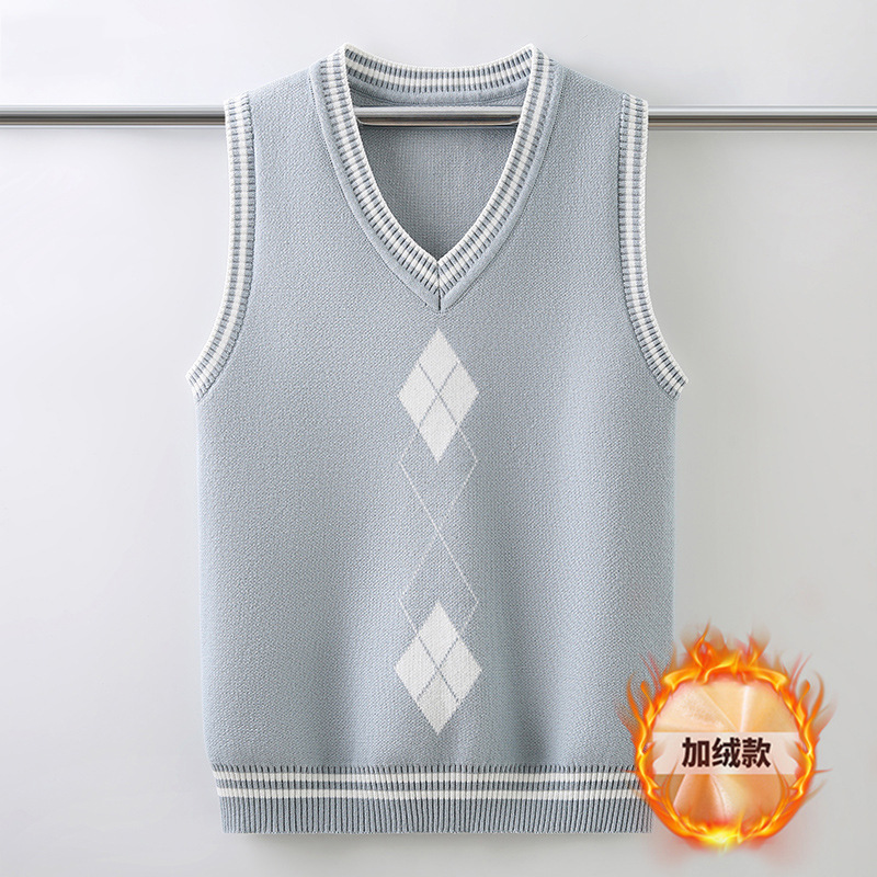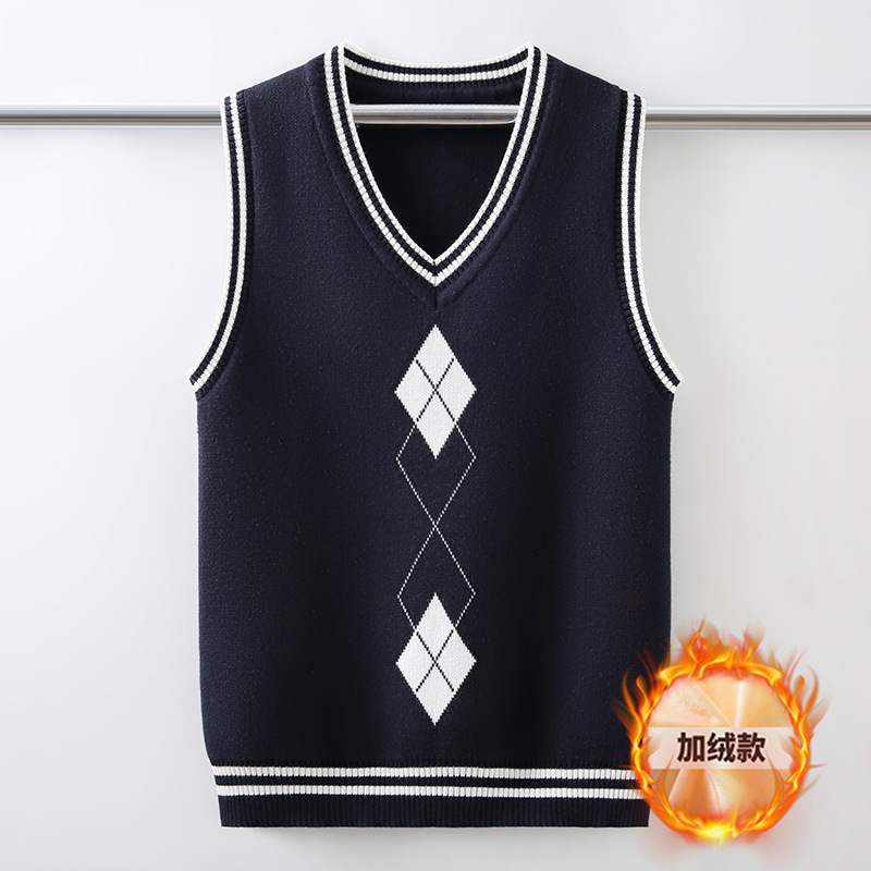 교복 남학생 조끼, 가을 겨울 벨벳 조끼, 중대형 아동 브이넥 풀오버, 컬리지 스타일 스웨터, 서양식 조끼