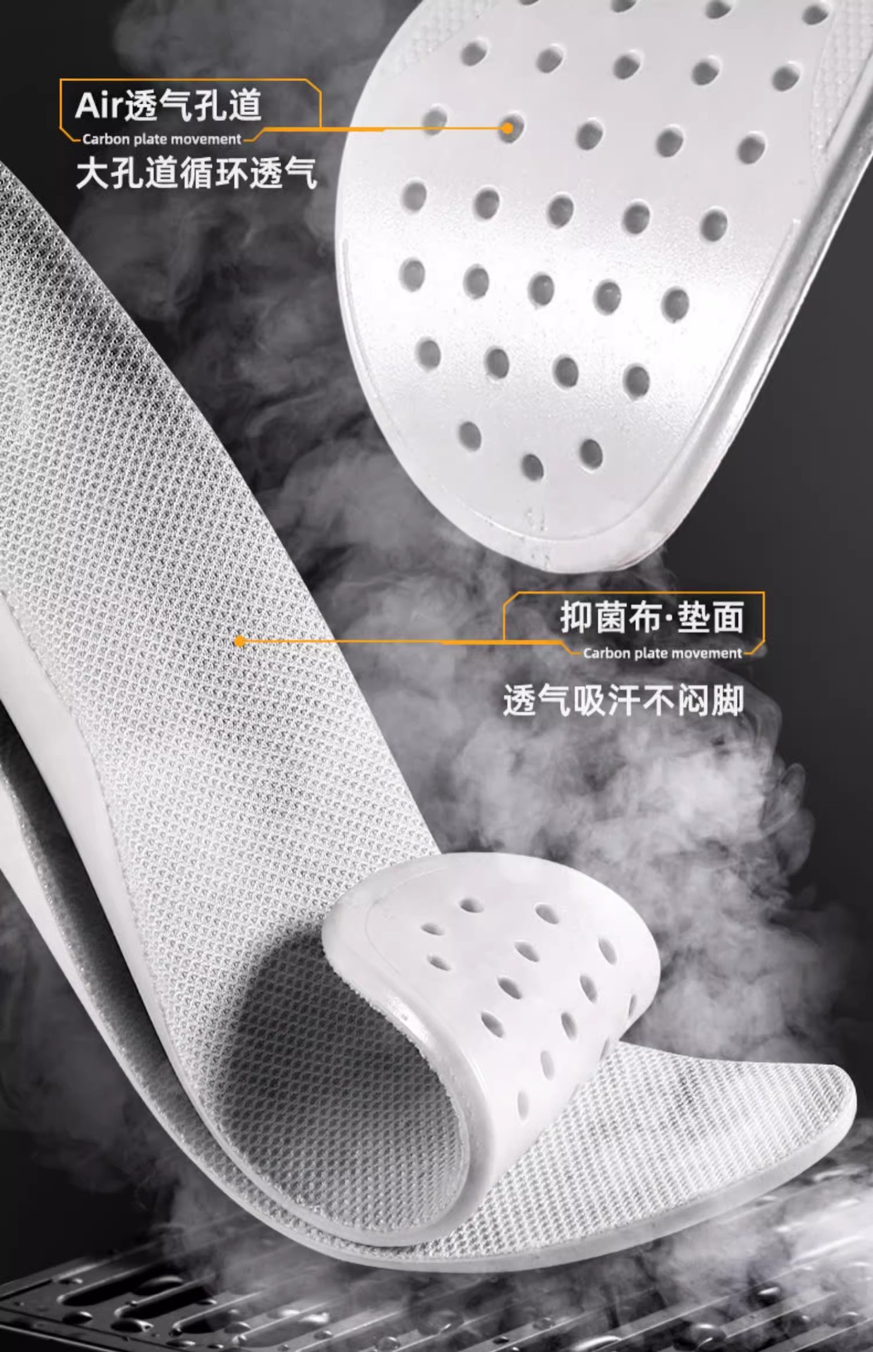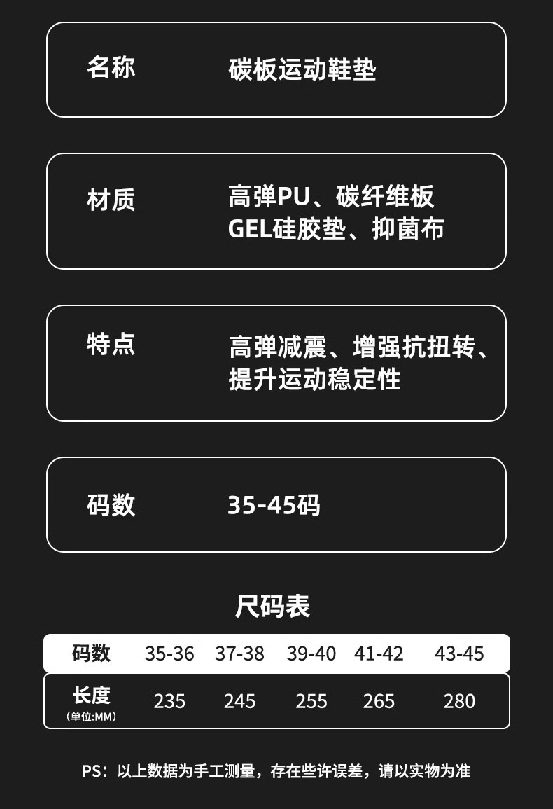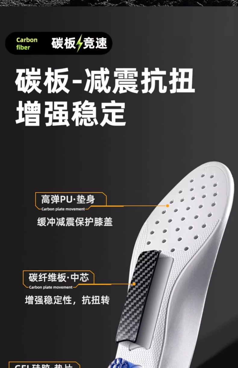 2025 고탄성 편안한 충격흡수 탄소섬유 스포츠 깔창 35-45 사이즈 남녀공용 PU 통기성 깔창 해외배송스토어 가기