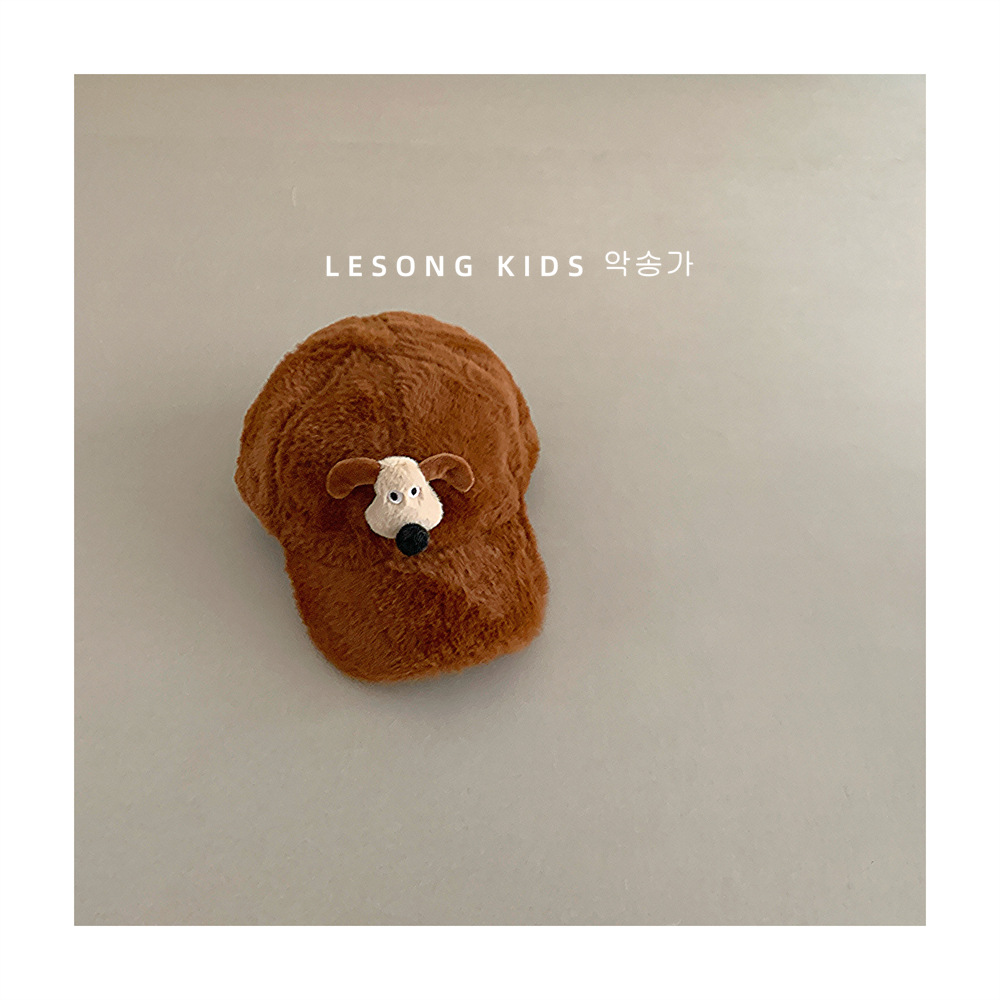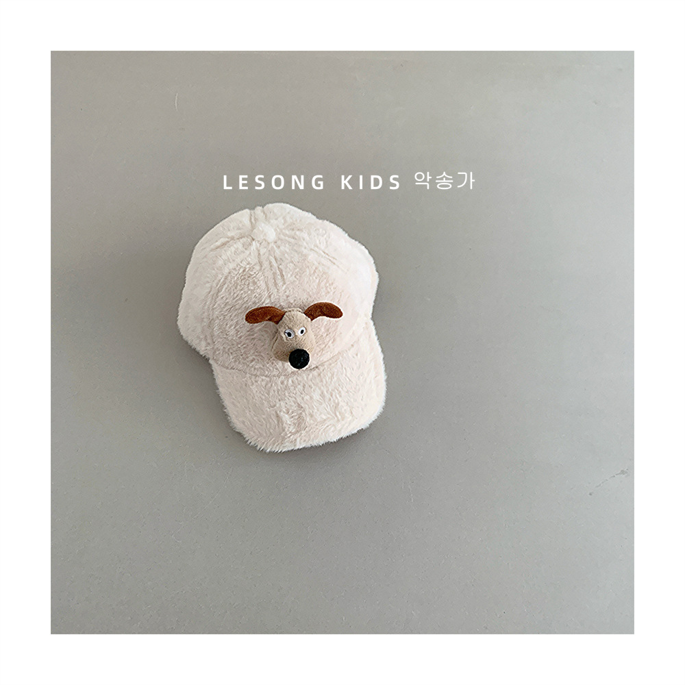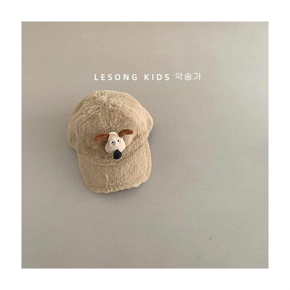 韩系秋冬保暖毛毛儿童小狗棒球帽