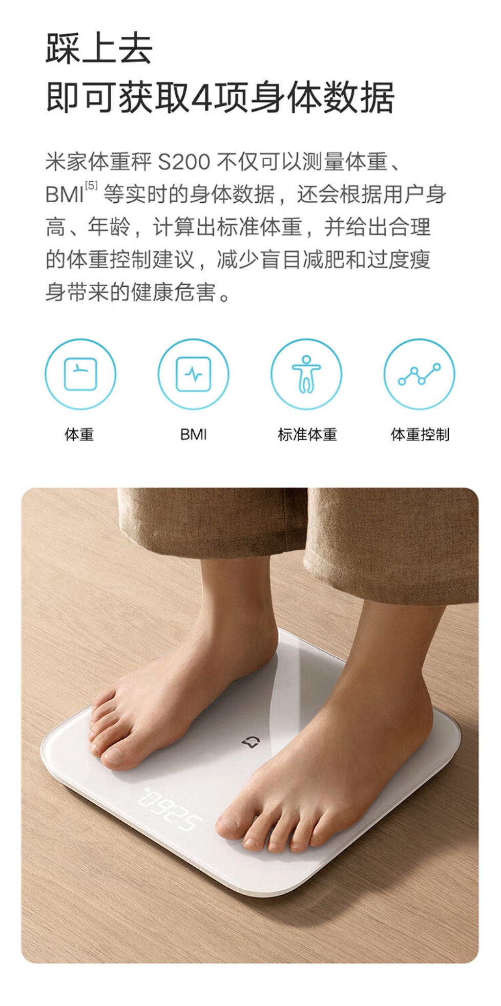 Xiaomi Mijia 무게 규모 S200 가정 기숙사 건강 고정밀 문자 듀얼 모드 데이터 측정 전자 규모스토어 가기
