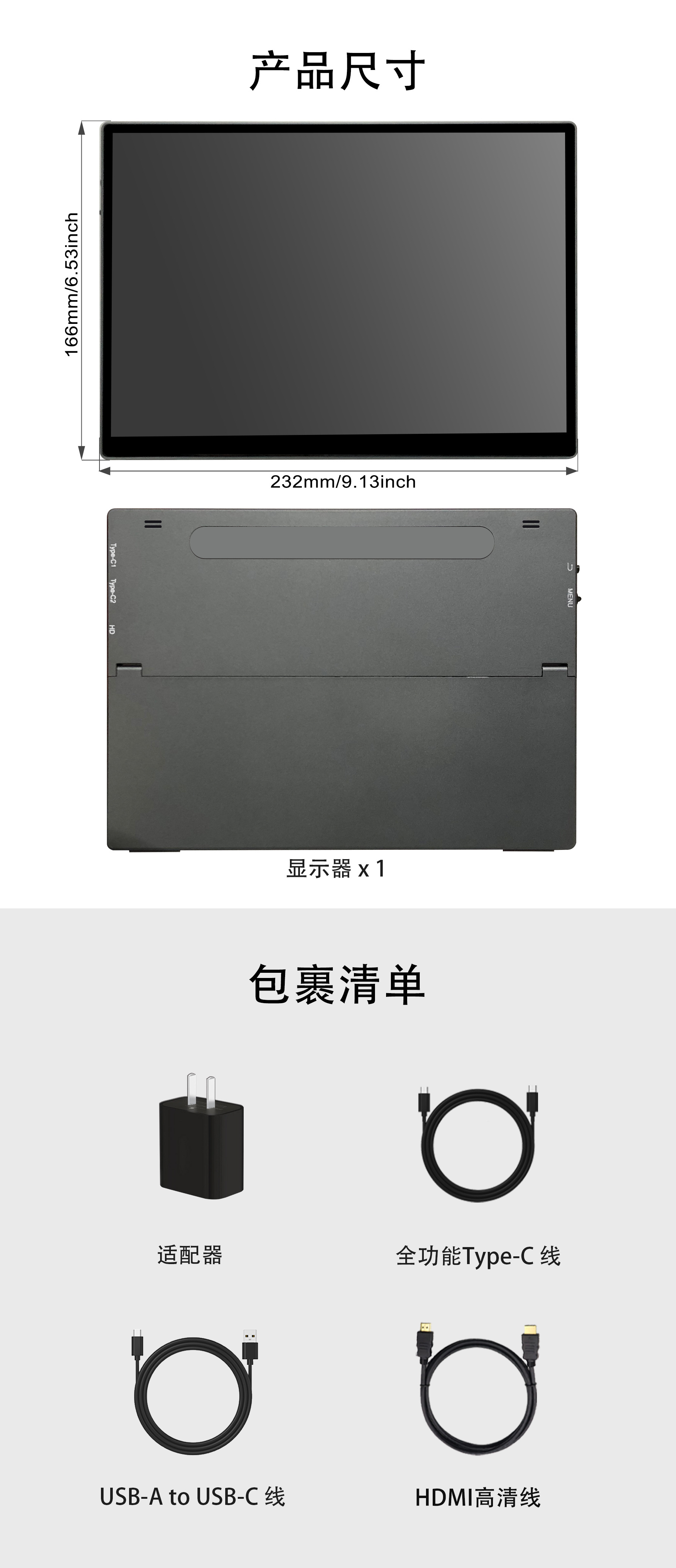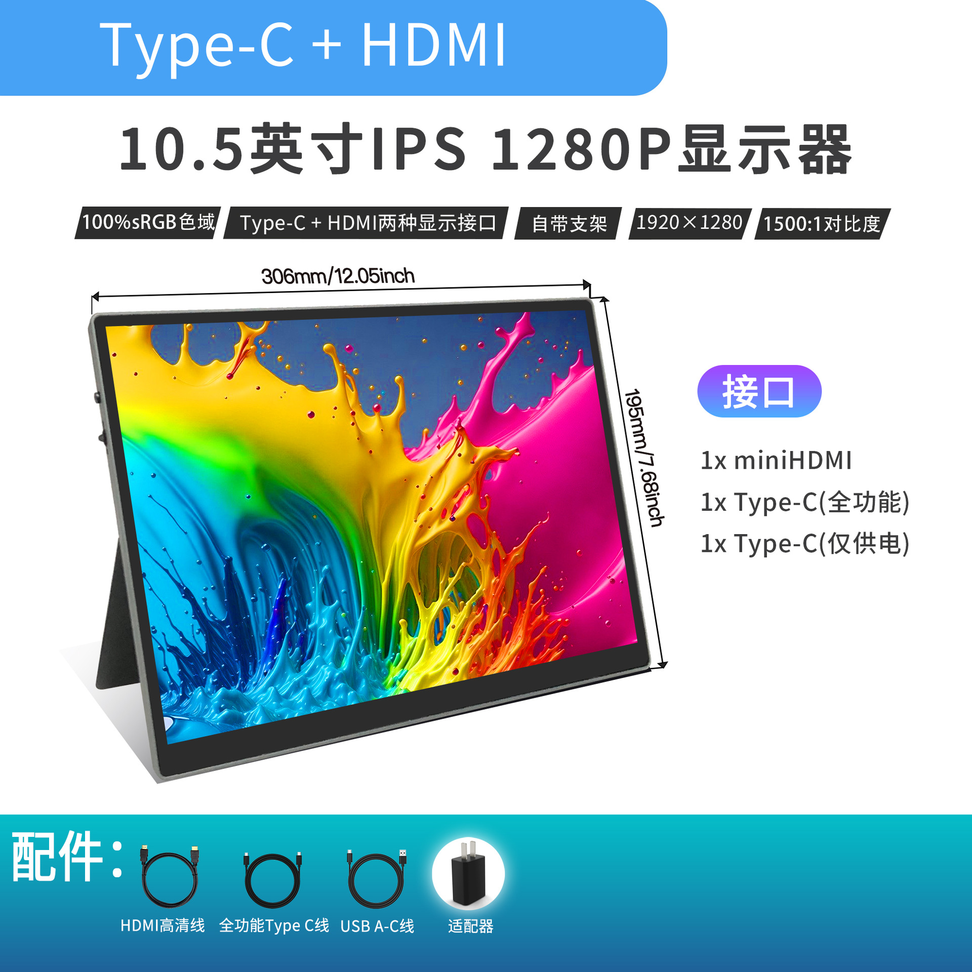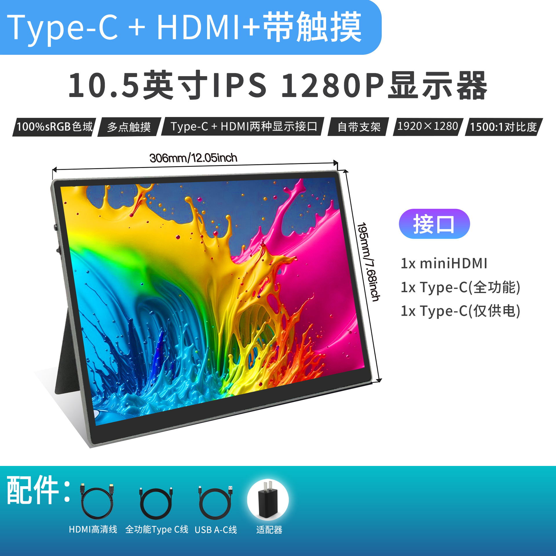 10.5inch 미니 휴대용 디스플레이 HD 터치 IPS 스크린 외부 휴대 전화 노트북 소형 컴퓨터 보조 화면