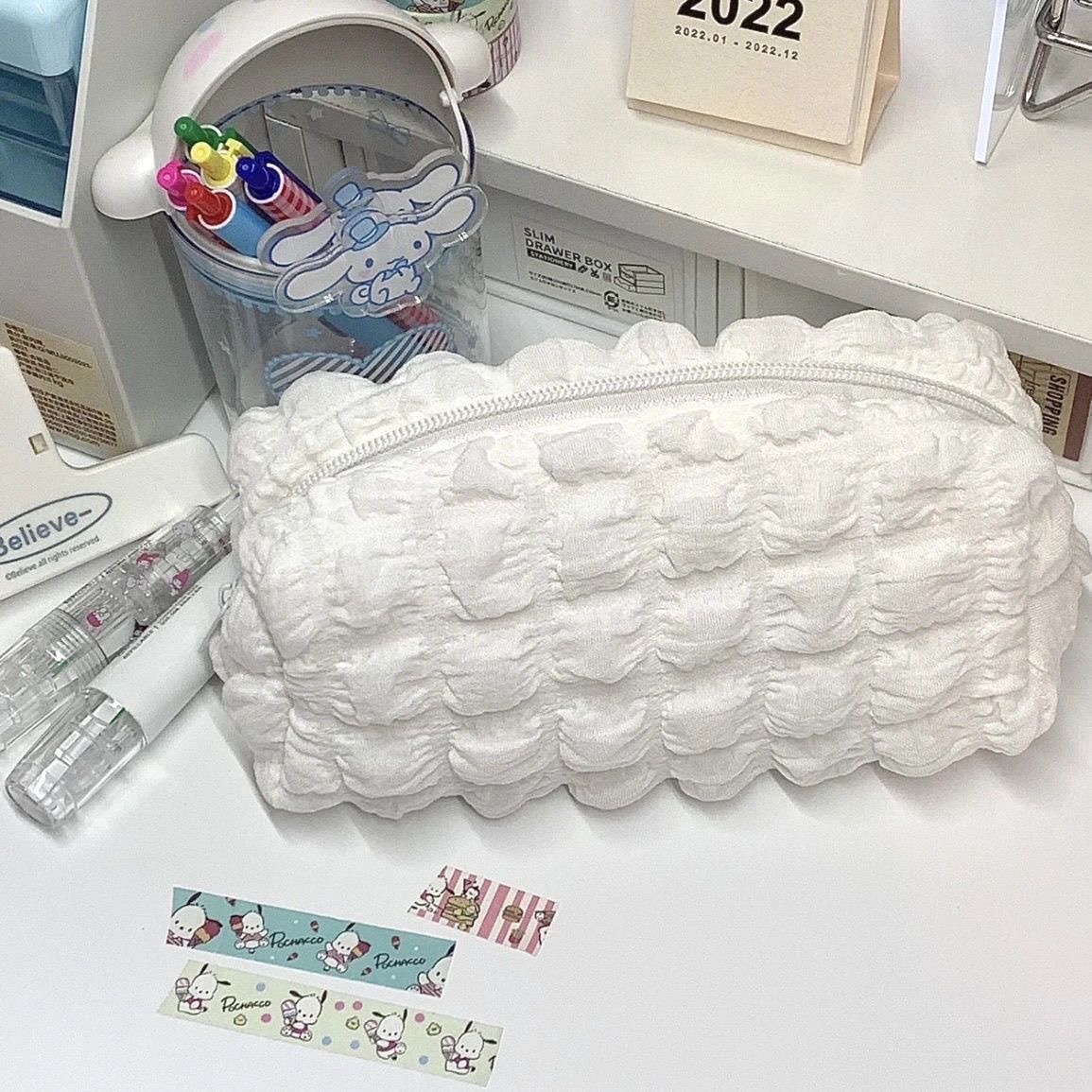 작은 빨간 승마 책 같은 스타일 귀여운 크림 퍼프 연필 가방 Instagram 스타일 대용량 학생 문구 가방 보관 가방