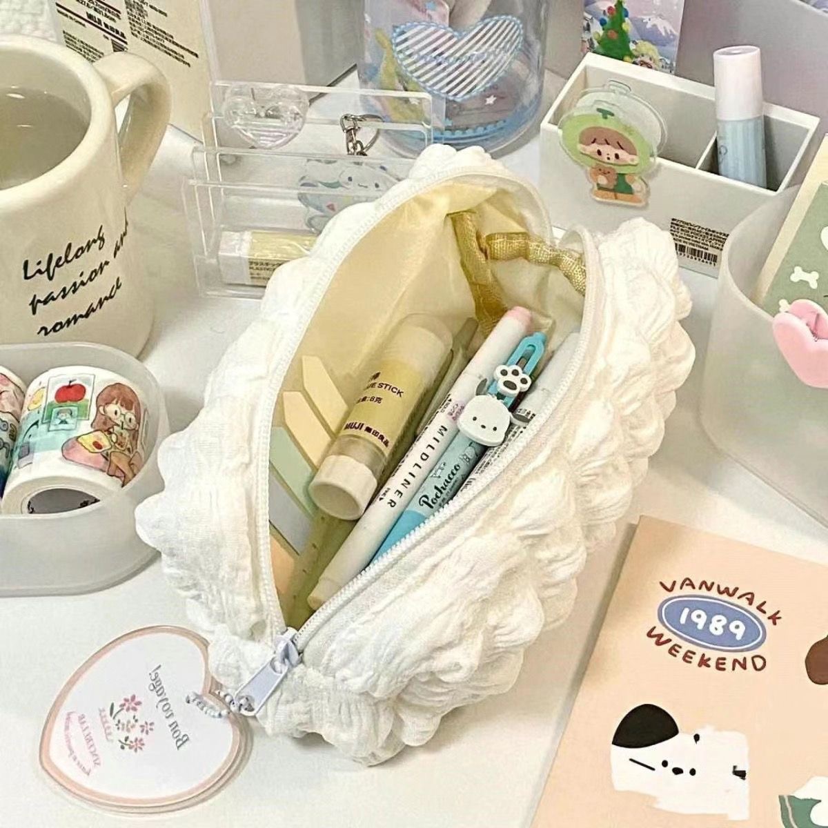 작은 빨간 승마 책 같은 스타일 귀여운 크림 퍼프 연필 가방 Instagram 스타일 대용량 학생 문구 가방 보관 가방스토어 가기