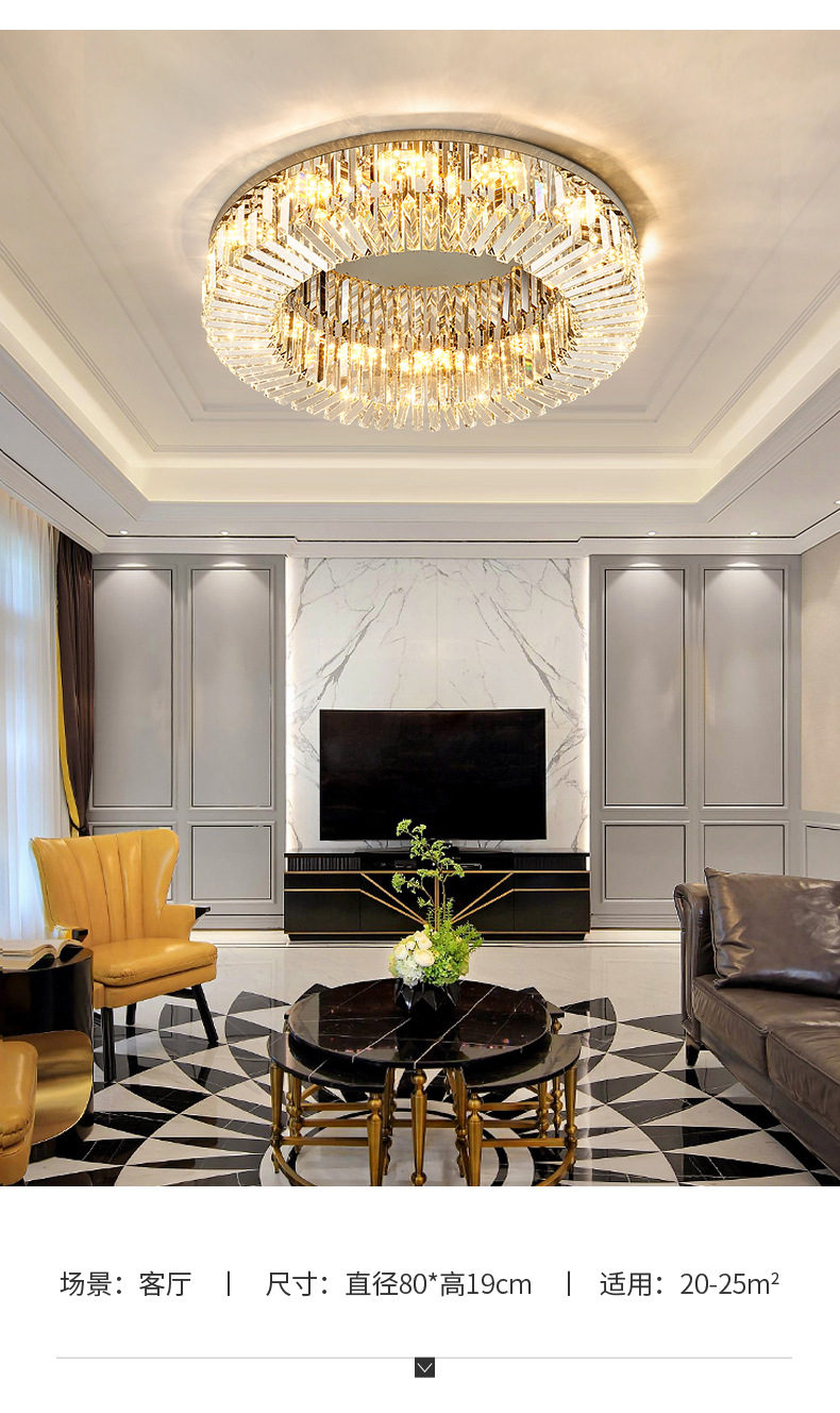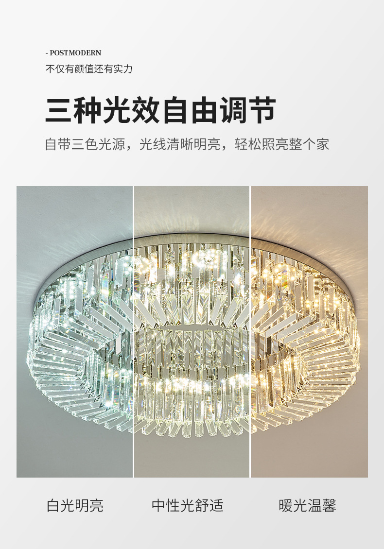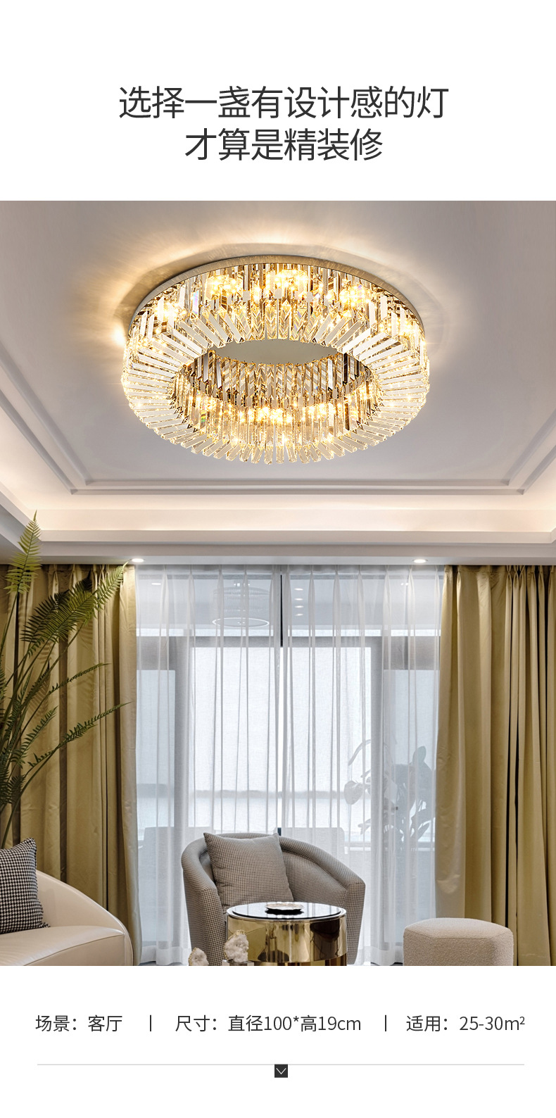 가벼운 럭셔리 크리스탈 천장 램프 라운드 하이 엔드 대기 거실 램프 간단한 레스토랑 침실 램프 룸 새로운 램프스토어 가기
