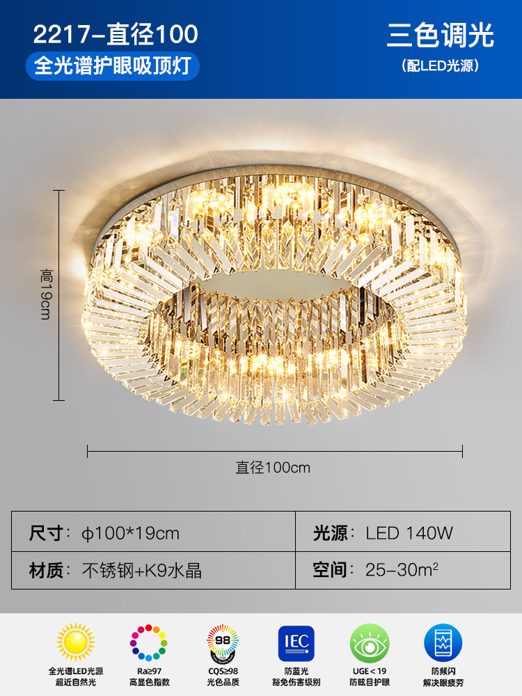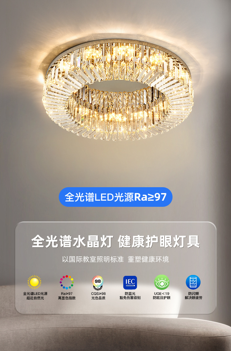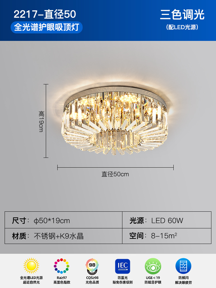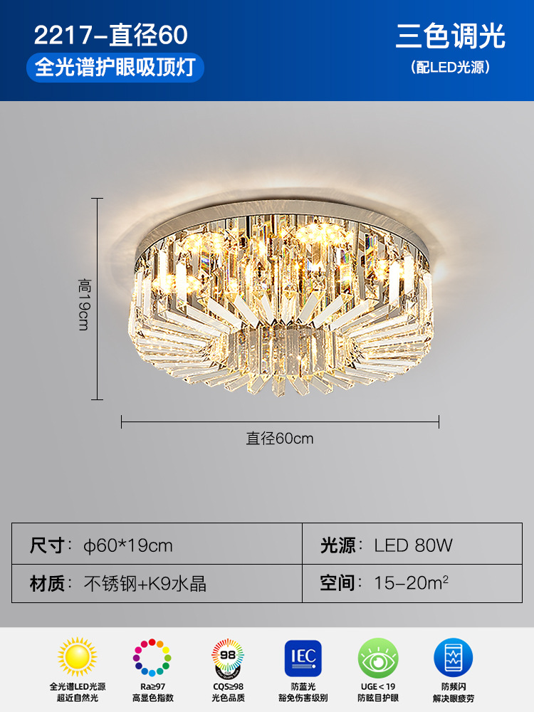 가벼운 럭셔리 크리스탈 천장 램프 라운드 하이 엔드 대기 거실 램프 간단한 레스토랑 침실 램프 룸 새로운 램프스토어 가기