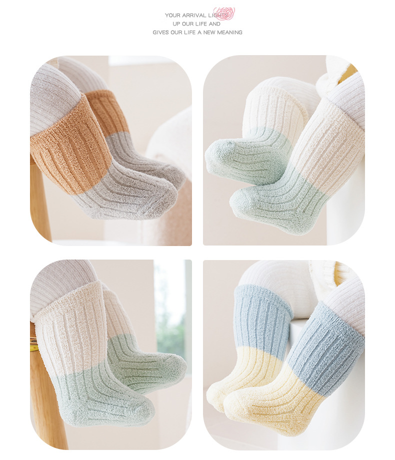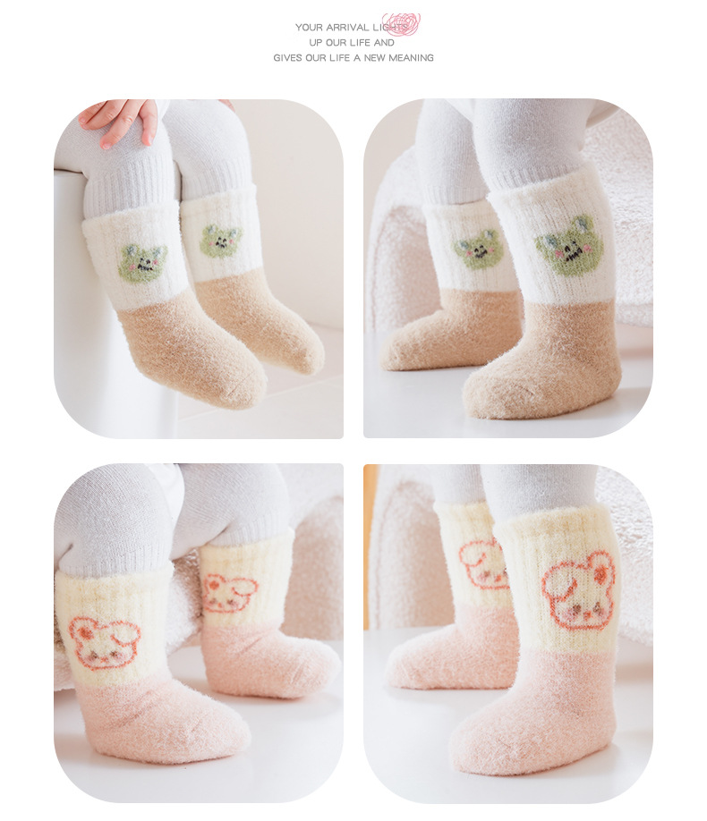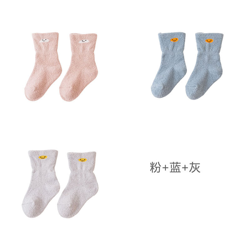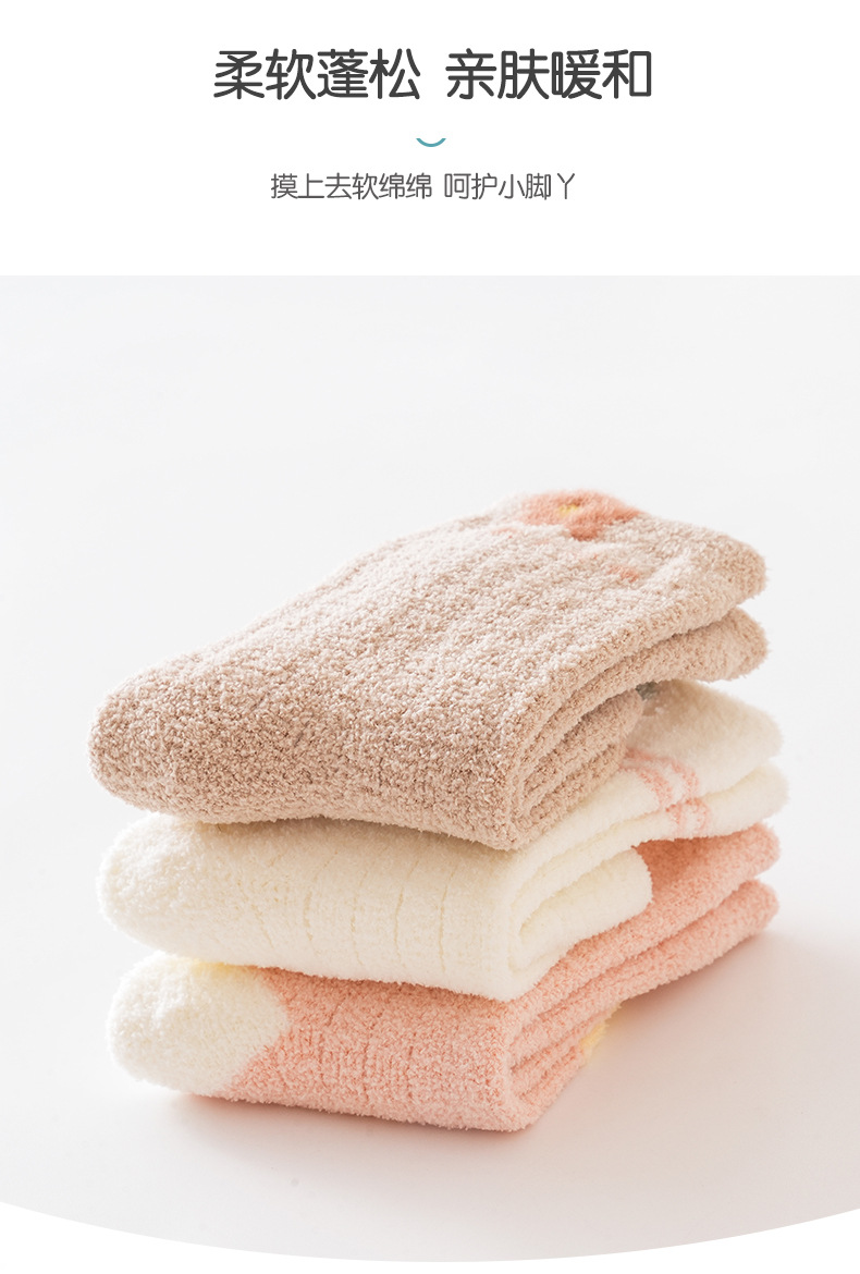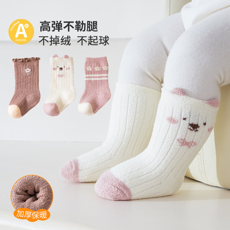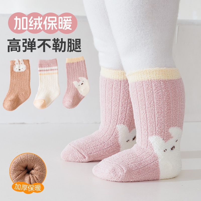 아기 양말 가을과 겨울 두꺼운 따뜻한 산호 양털 아기 겨울 기모 바닥 양말 느슨한 튜브 양말
