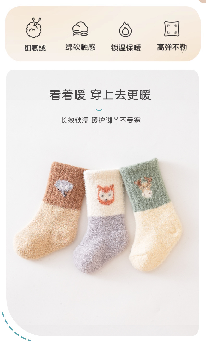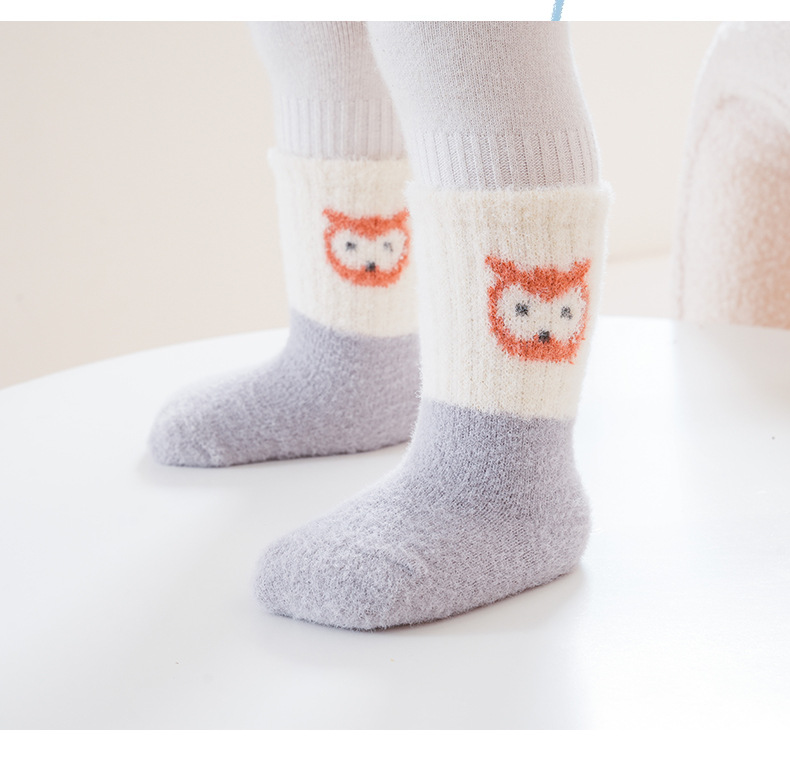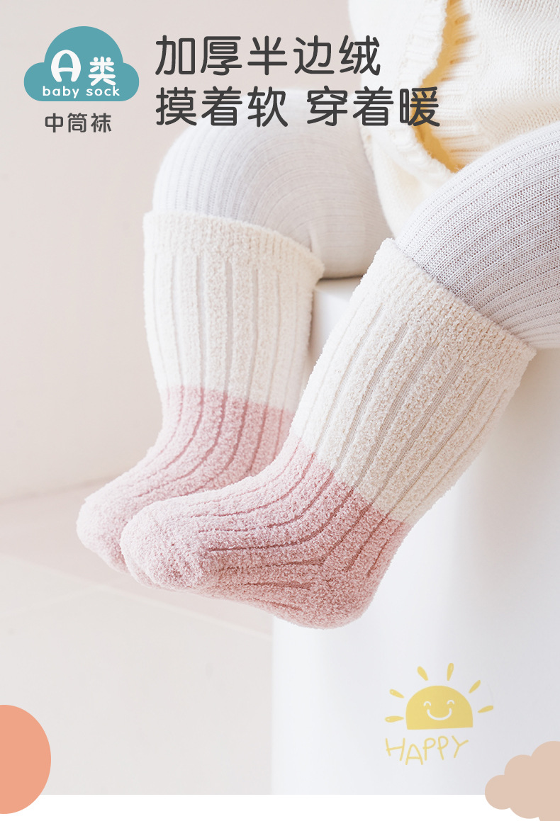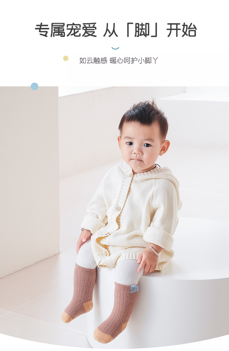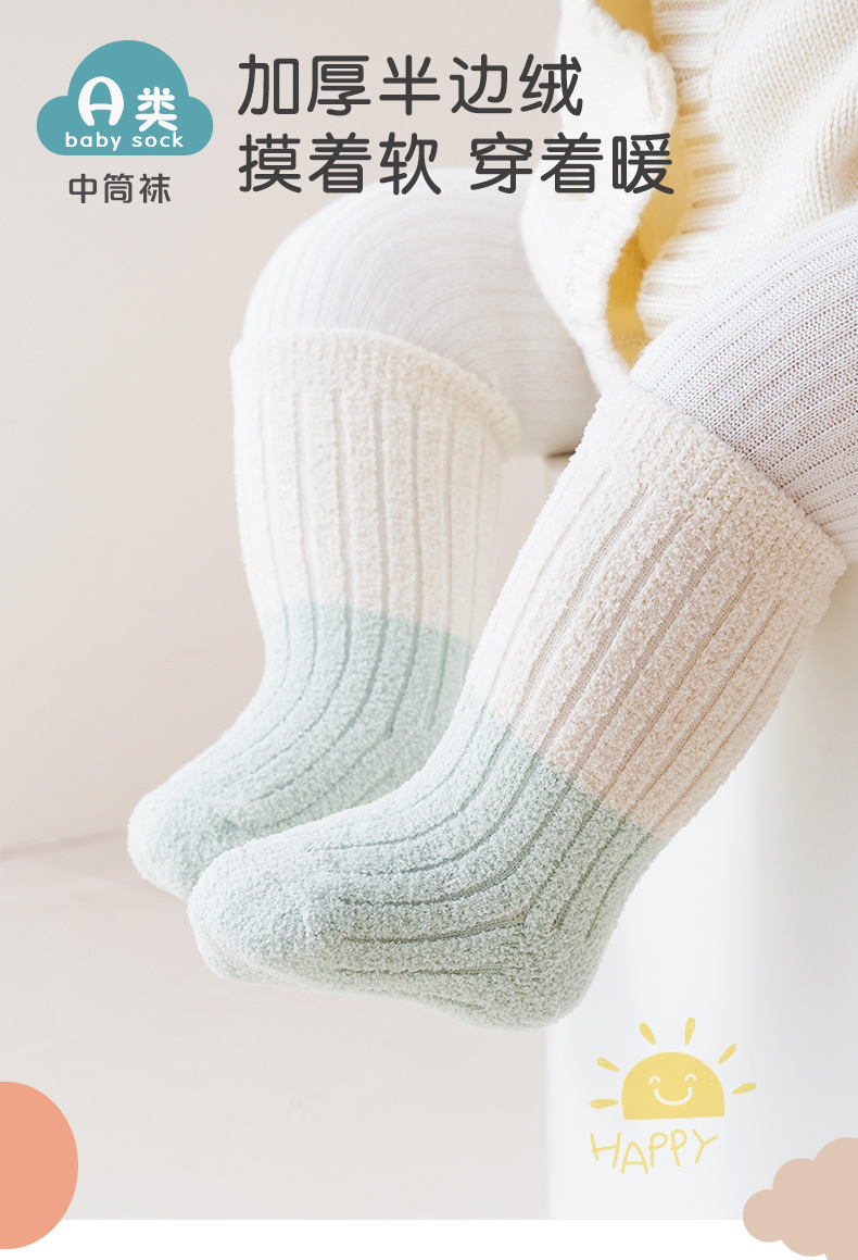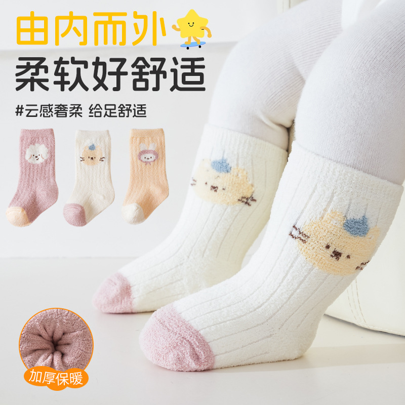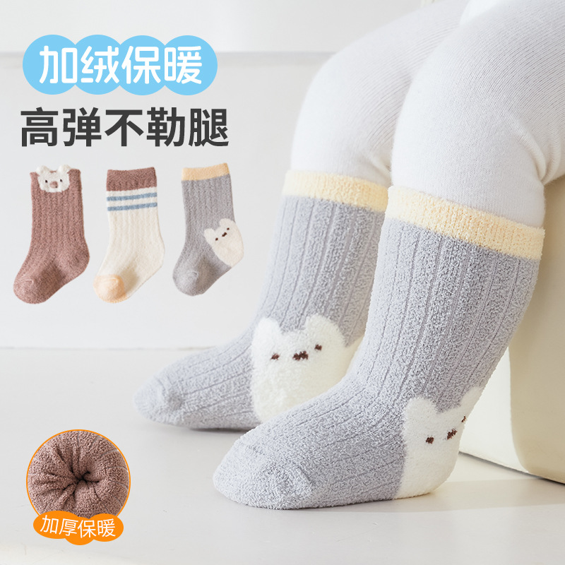 아기 양말 가을과 겨울 두꺼운 따뜻한 산호 양털 아기 겨울 기모 바닥 양말 느슨한 튜브 양말스토어 가기
