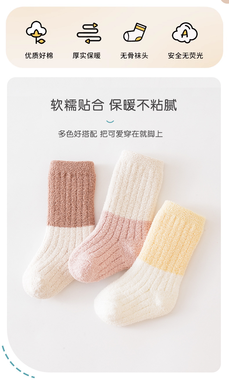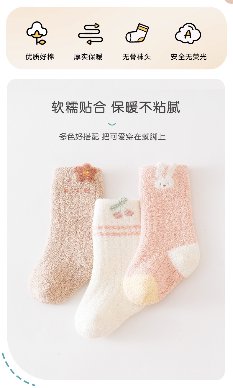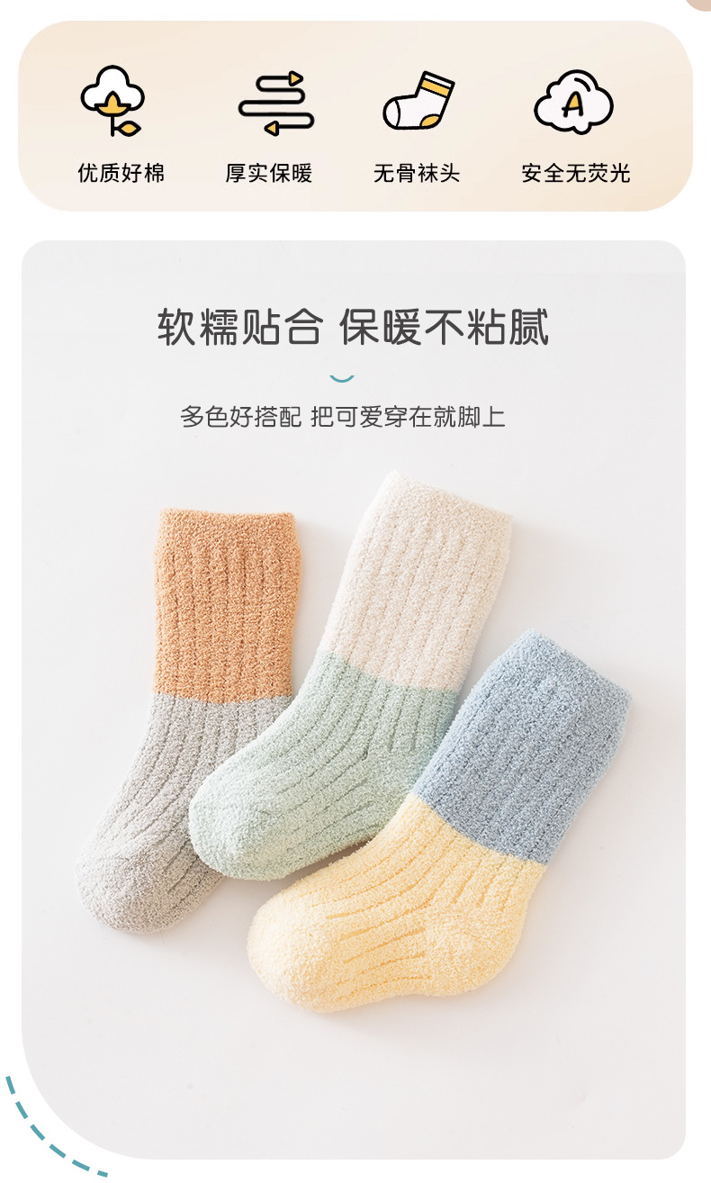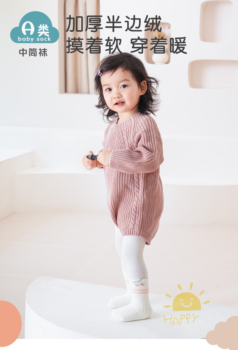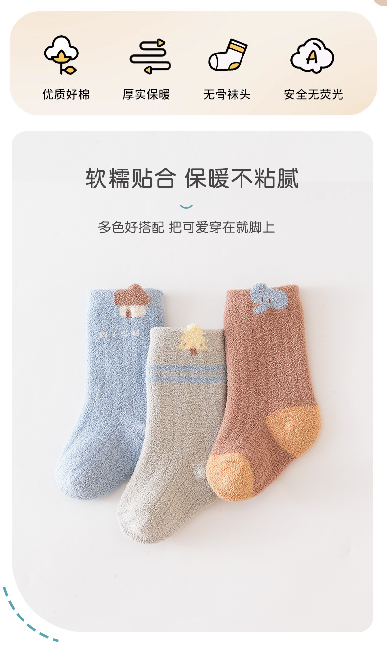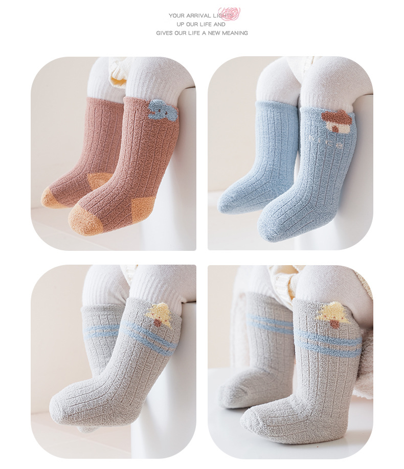 아기 양말 가을과 겨울 두꺼운 따뜻한 산호 양털 아기 겨울 기모 바닥 양말 느슨한 튜브 양말스토어 가기