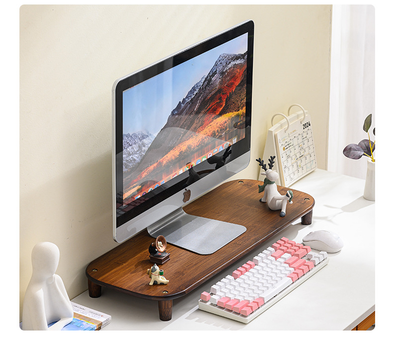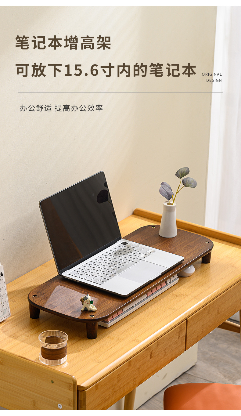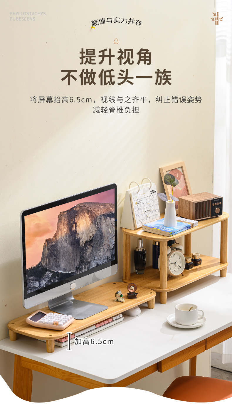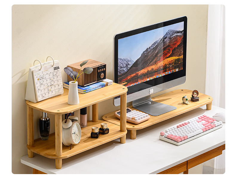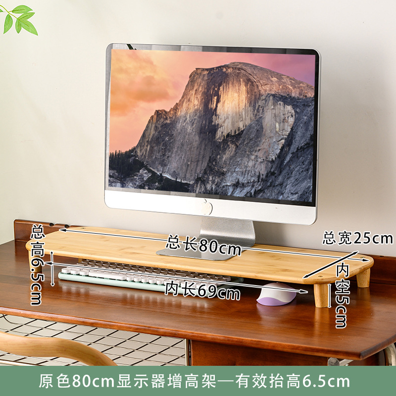 컴퓨터 모니터 높은 랙 오피스 데스크 대나무 테이블 스토리지 랙 데스크탑 패드 높은 기본 데스크탑 스토리지 랙