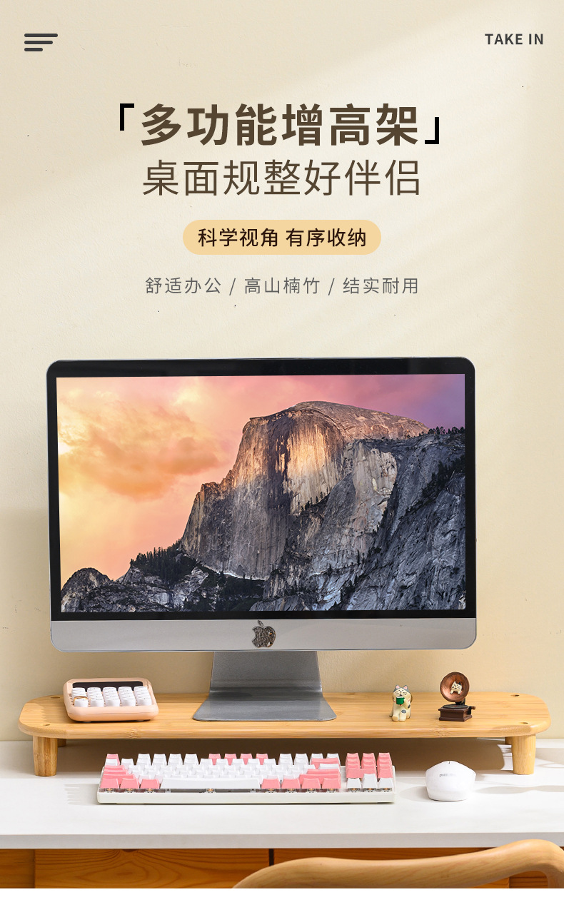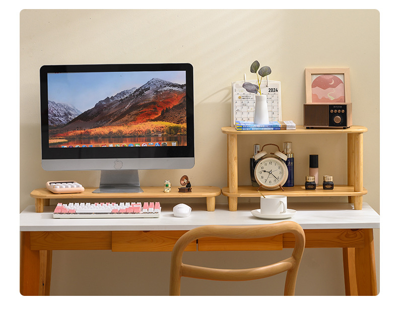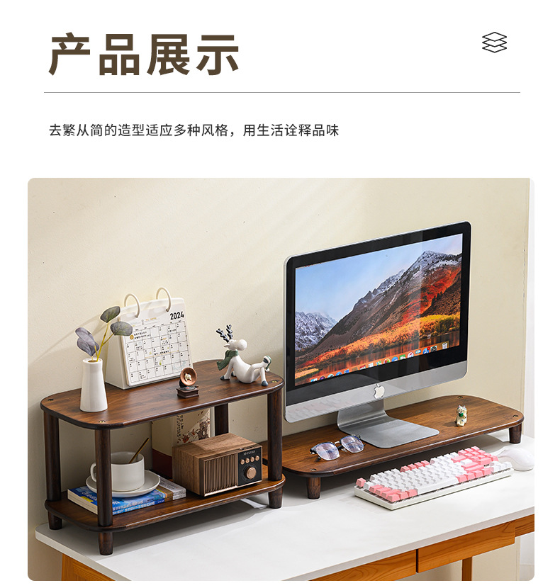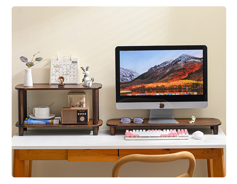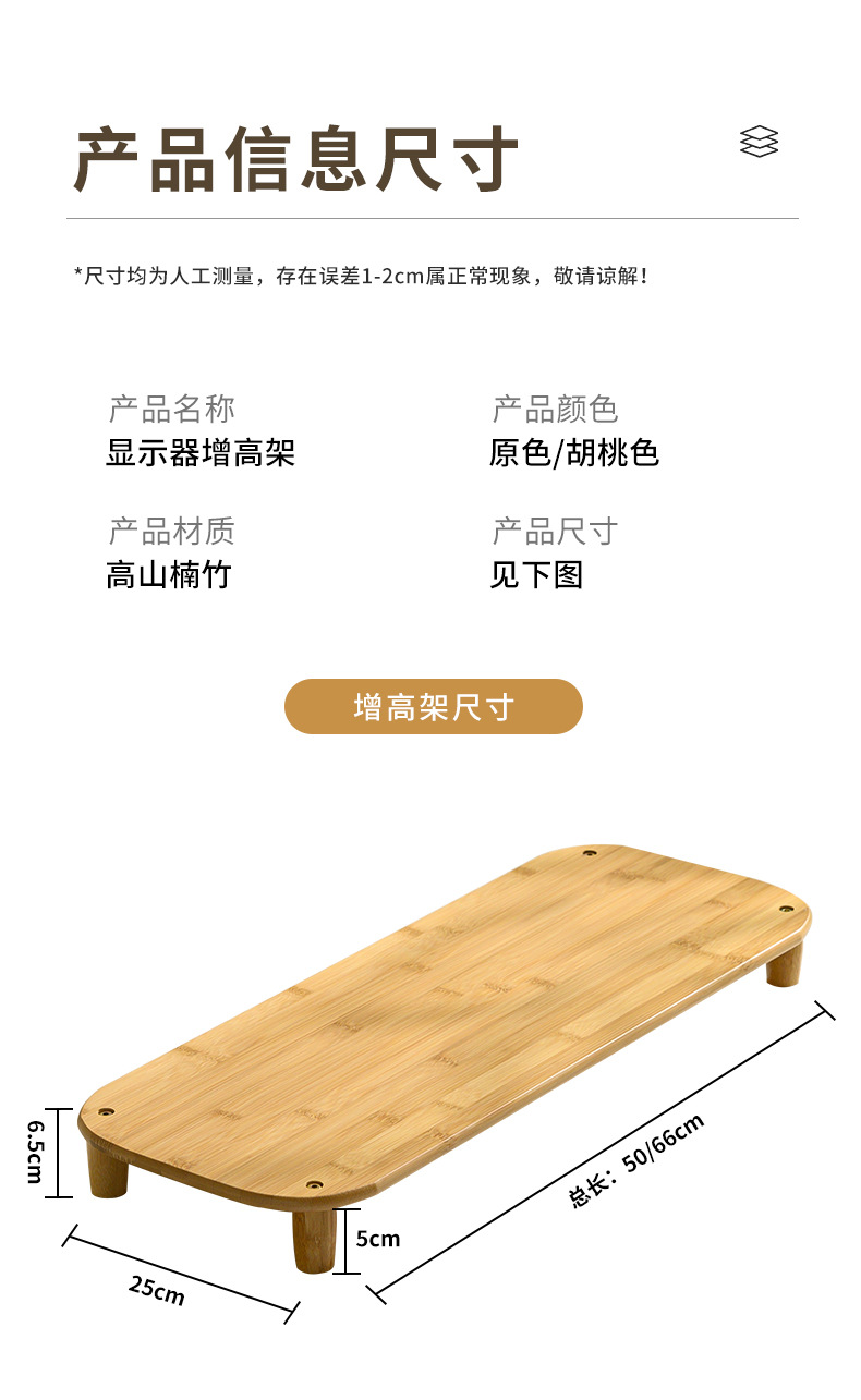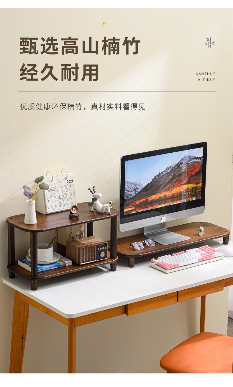 컴퓨터 모니터 높은 랙 오피스 데스크 대나무 테이블 스토리지 랙 데스크탑 패드 높은 기본 데스크탑 스토리지 랙