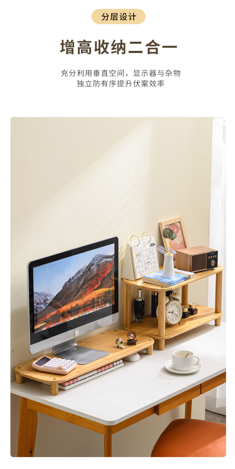 컴퓨터 모니터 높은 랙 오피스 데스크 대나무 테이블 스토리지 랙 데스크탑 패드 높은 기본 데스크탑 스토리지 랙스토어 가기