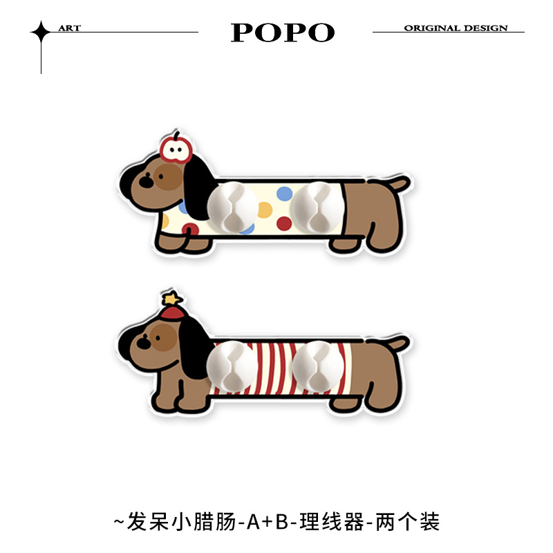 Dachshund 데이터 케이블 홀더 비 펀치 스냅 고정 클립 주최자 데스크탑 충전 케이블 스토리지 아티팩트