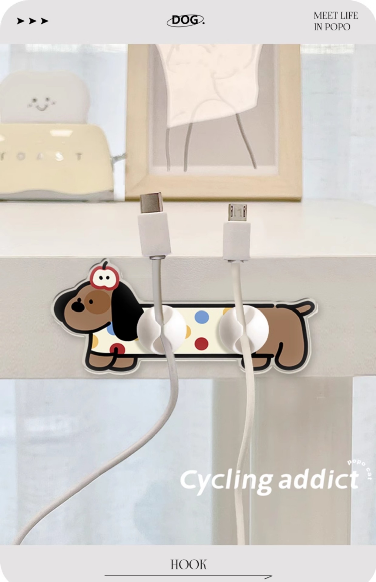 Dachshund 데이터 케이블 홀더 비 펀치 스냅 고정 클립 주최자 데스크탑 충전 케이블 스토리지 아티팩트스토어 가기