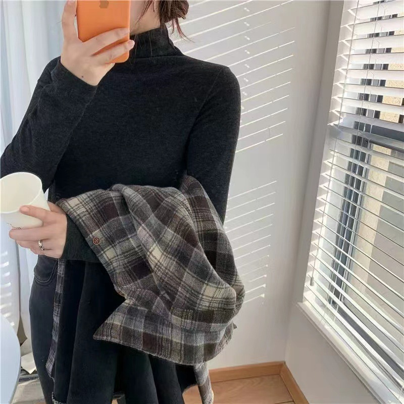 캐시미어 280g 두꺼운 따뜻한 반 높은 목베이스 셔츠 가을과 겨울 새로운 슬림 핏 솔리드 컬러 올 매치 롱 슬리브 탑스토어 가기