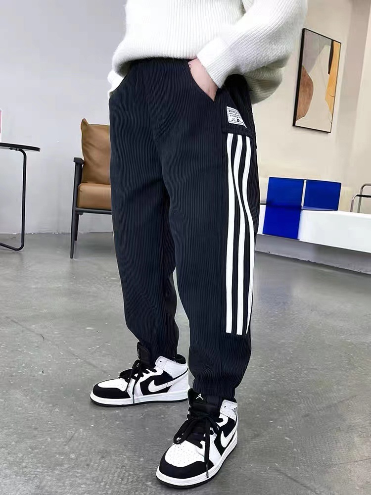 소년 코듀로이 스포츠 바지 봄과 가을 2024 새로운 대형 어린이 원피스 벨벳 따뜻한면 바지 캐주얼 바지스토어 가기