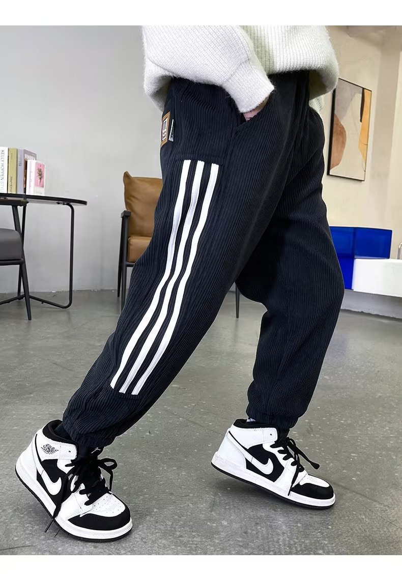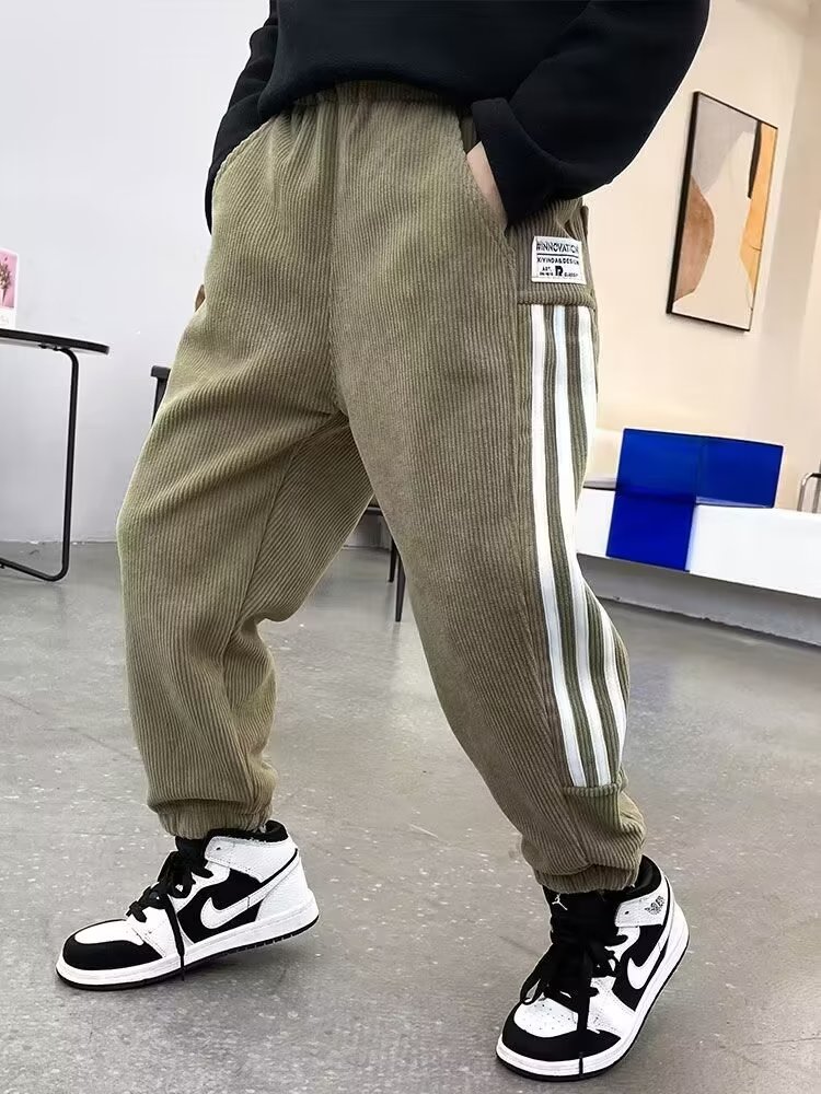 소년 코듀로이 스포츠 바지 봄과 가을 2024 새로운 대형 어린이 원피스 벨벳 따뜻한면 바지 캐주얼 바지