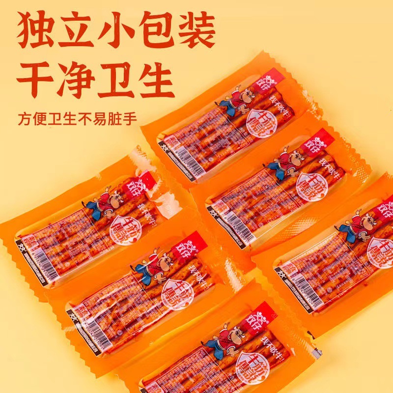 Shuangzai 쇠고기 힘줄 전설 매운 작은 패키지 매운 콩 힘줄 어린 시절 향수 채식 쇠고기 끈 간식 전체 상자 도매스토어 가기